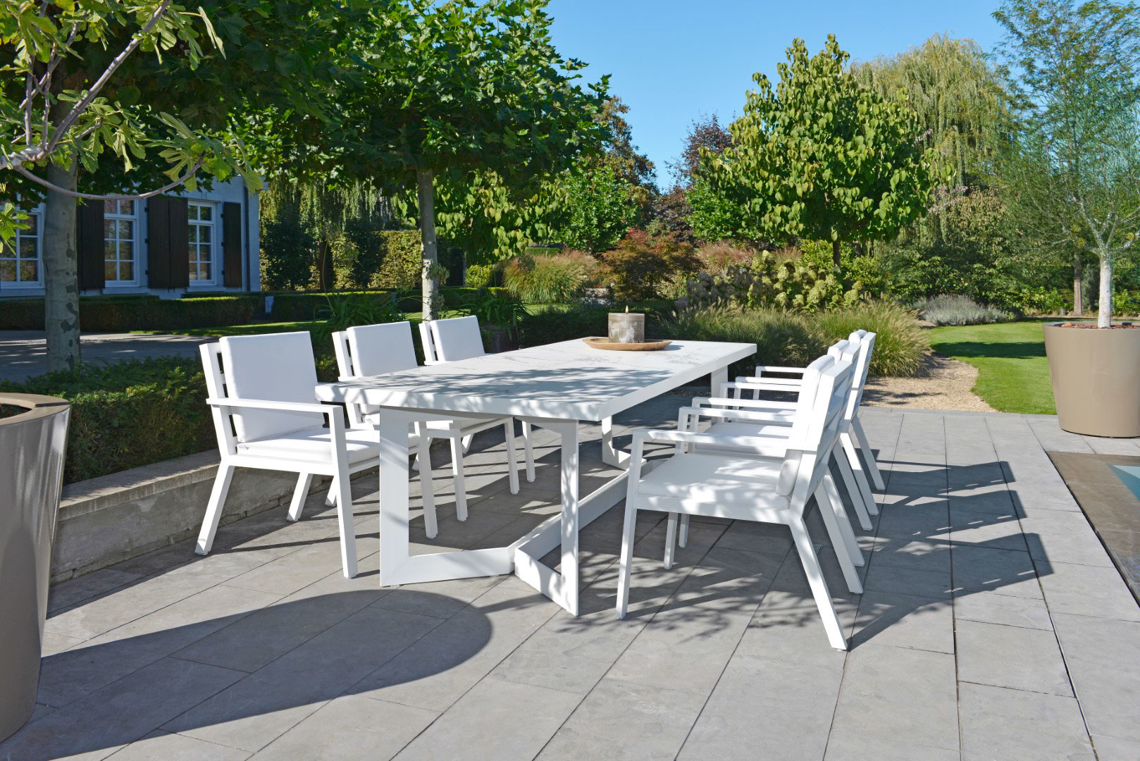 Borek's Arta collection includes a number of beautiful tables, which are characterized by the Dekton top of your choice . In addition to the Faro line, this collection is equipped with this special material. It is scratch and wear resistant and very durable. It can be left outside all year round, be it winter or summer. The chairs from the Samos collection lend themselves perfectly to this table. This design comes from Studio Borek.