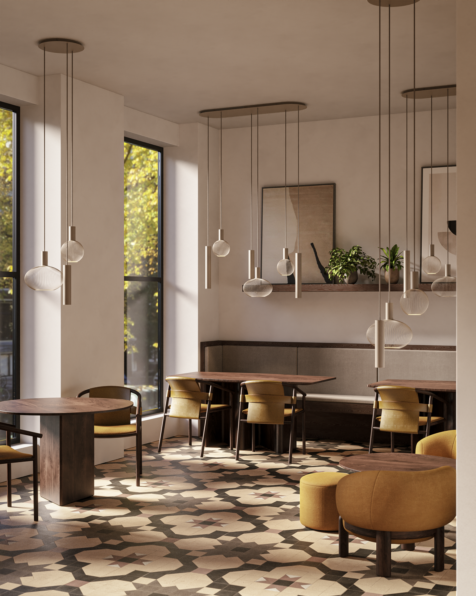 With its flat, oval shape (120 x 35 cm) and height of up to 150 cm, Como 9130 fits effortlessly above long dining tables or worktops, a design in which simplicity and function reinforce each other.