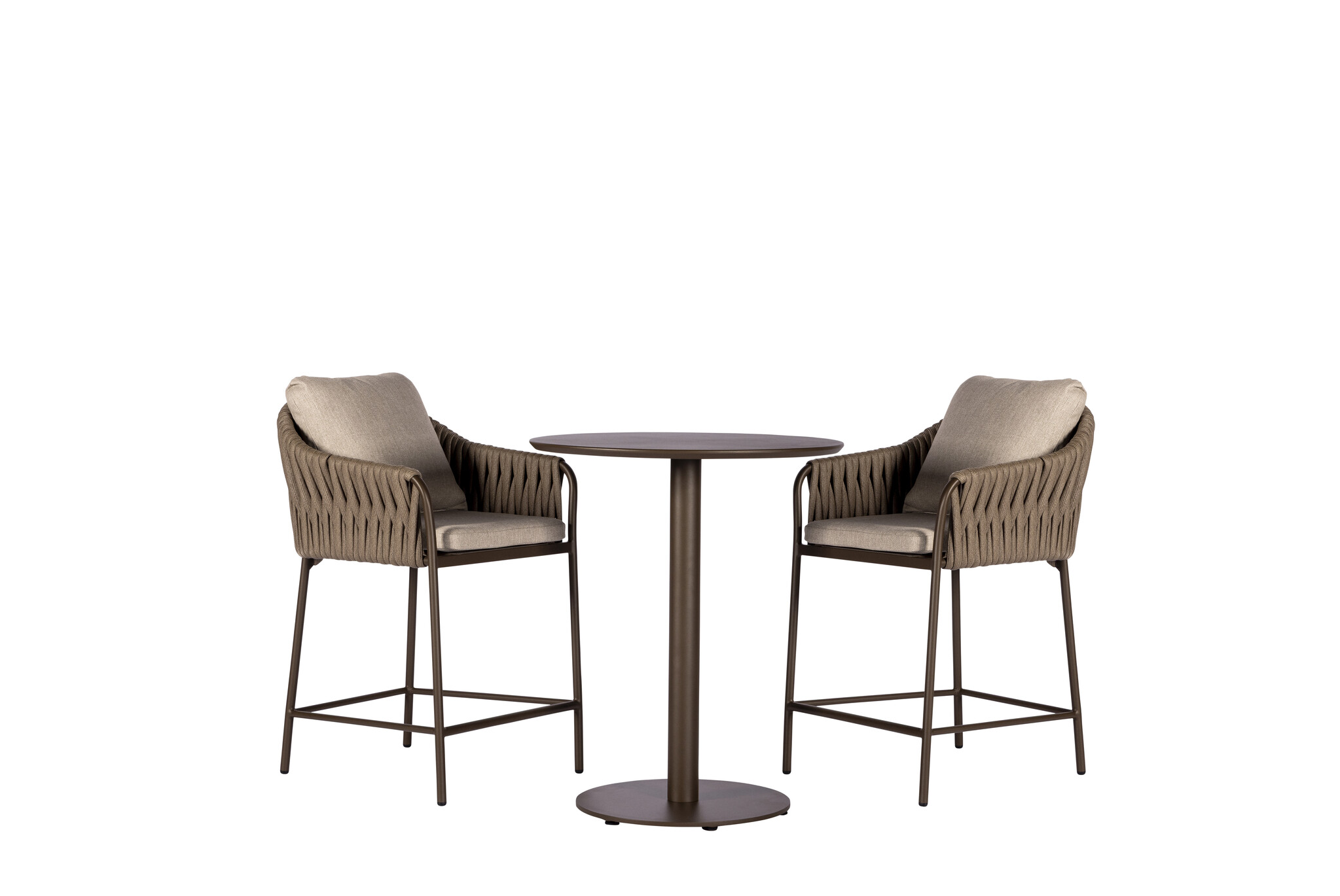 The Hydra high dining chair is finished in aluminium Bronze, a warm and timeless shade that immediately gives the chair a luxurious look. The rope in Toffee blends in seamlessly and adds a natural, contemporary texture to the design. The soft Flax Beige all-weather cushions complete the look and ensure comfortable seating with a subtle, calm colour nuance. The sturdy aluminium frame offers stability and durability, while the refined rope work keeps the chair light and modern. The all-weather cushions retain their shape and colour, even when the chair is left outside in all weathers. Thanks to its comfortable seat and careful choice of materials, the Hydra high dining chair effortlessly combines comfort, style and ease of use. This chair is ideal for a stylish high dining arrangement and brings a refined, inviting atmosphere to any outdoor space.