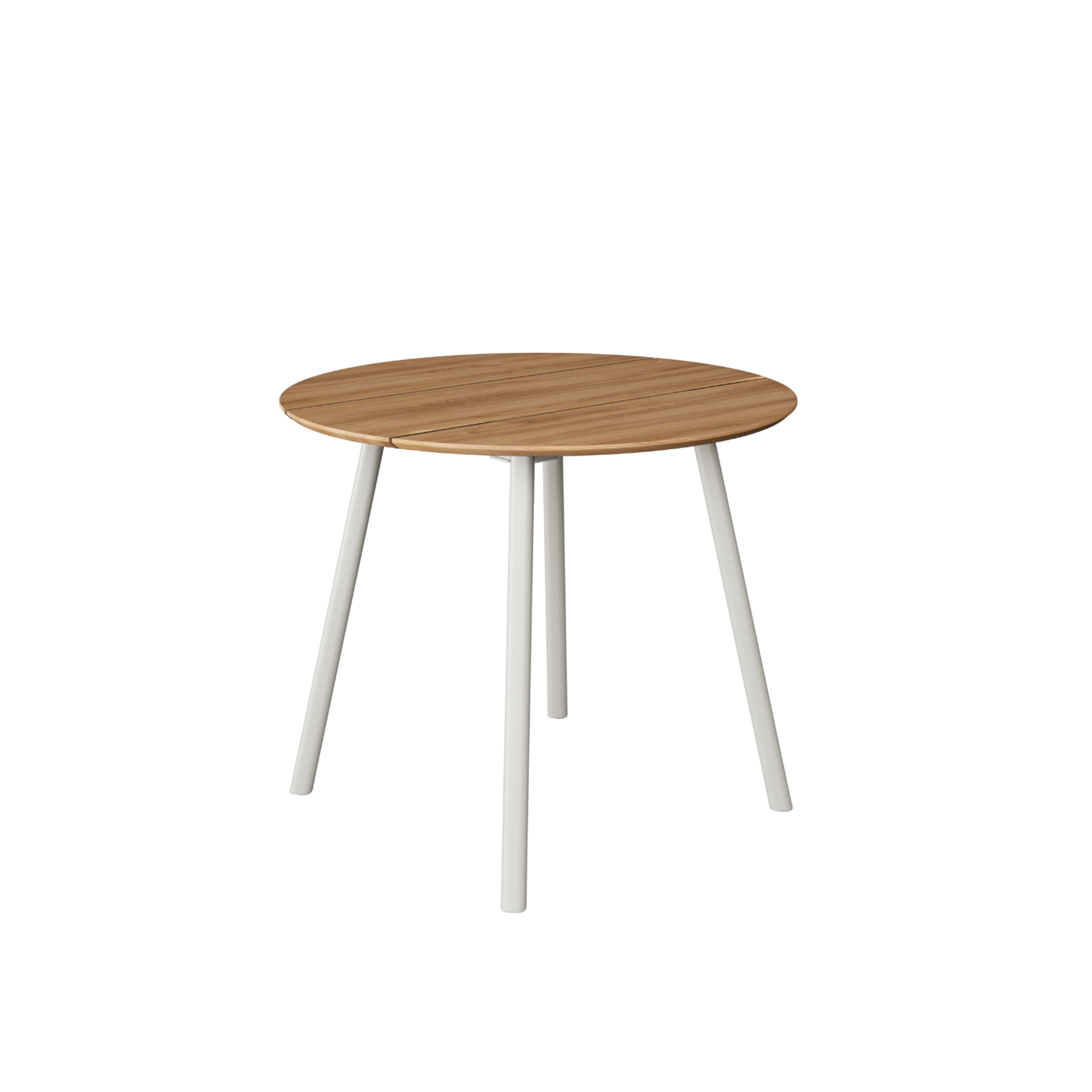 The Olbia series offers a contemporary solution for both residential and hospitality settings. Slender aluminum legs support a thin teak top, available in various sizes and heights. The color combinations of linen with teak and bronze with teak create a stylish look.