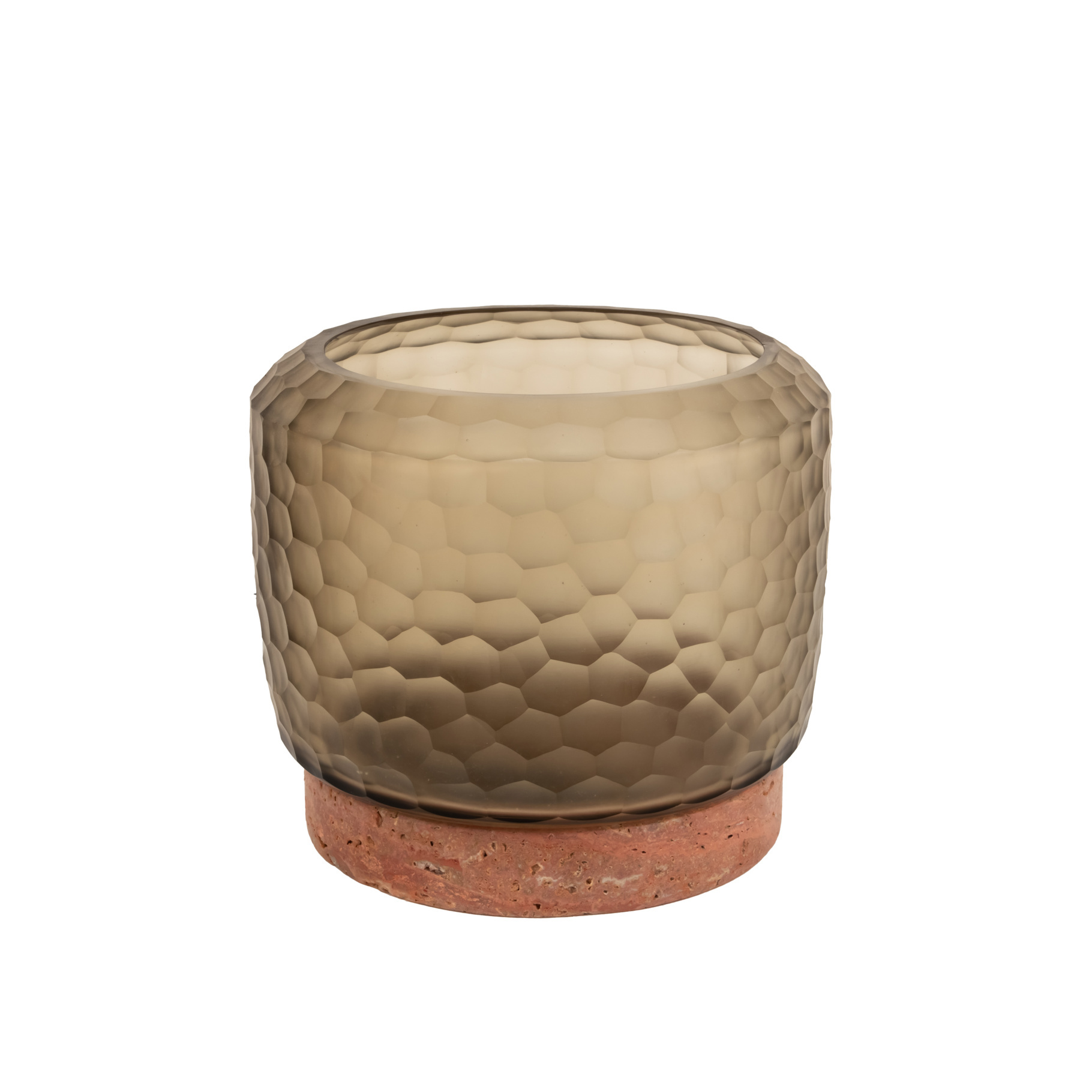 Windlight in the colour dark green by the brand Dôme Deco is a mood creator for your interior. This windlight is 18,5 cm high and looks great on a sideboard, coffee table or side table. It is nice to combine them with the smaller size.