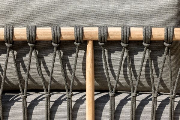 In addition to the Valente sofa, there is a spacious Valente daybed for two, featuring the same refined, airy design as the matching modular sofa, with beautiful teak wood, dark green rope applied in an airy weave and gray-green cushions. And that's not all: want to easily put away a drink while lying on the daybed? Then simply place the daybed tray between the cushions of both parts of the daybed. A prime example of the effortless combination of functionality and design that Max & Luuk has been known for since 2013.