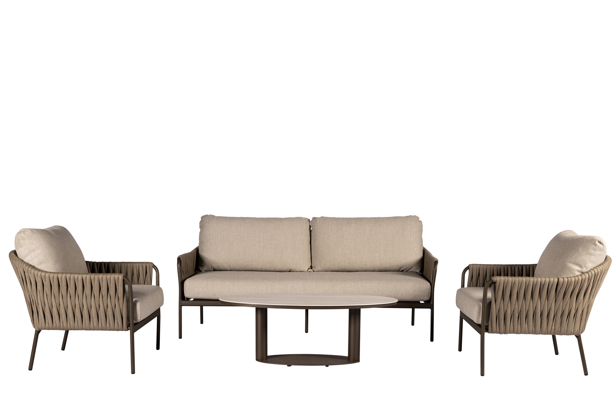 The Hydra lounge chair in bronze aluminium combines luxury and natural refinement in a compact, comfortable design. The robust yet lightweight frame is completely rustproof, making it ideal for long-term outdoor use without the need for maintenance. The hand-woven rope in a warm toffee shade gives the chair a rich texture and an authentic look. Combined with the soft cushions in flax beige all-weather fabric, it creates a particularly comfortable seating experience. These cushions are designed to withstand sun, rain and daily use, while retaining their shape and appearance. Thanks to the subtle mix of bronze, toffee and natural beige tones, the Hydra lounge chair fits effortlessly into both modern and more organic outdoor environments. It is a stylish choice for those who love to relax with a touch of luxury and a timeless look.