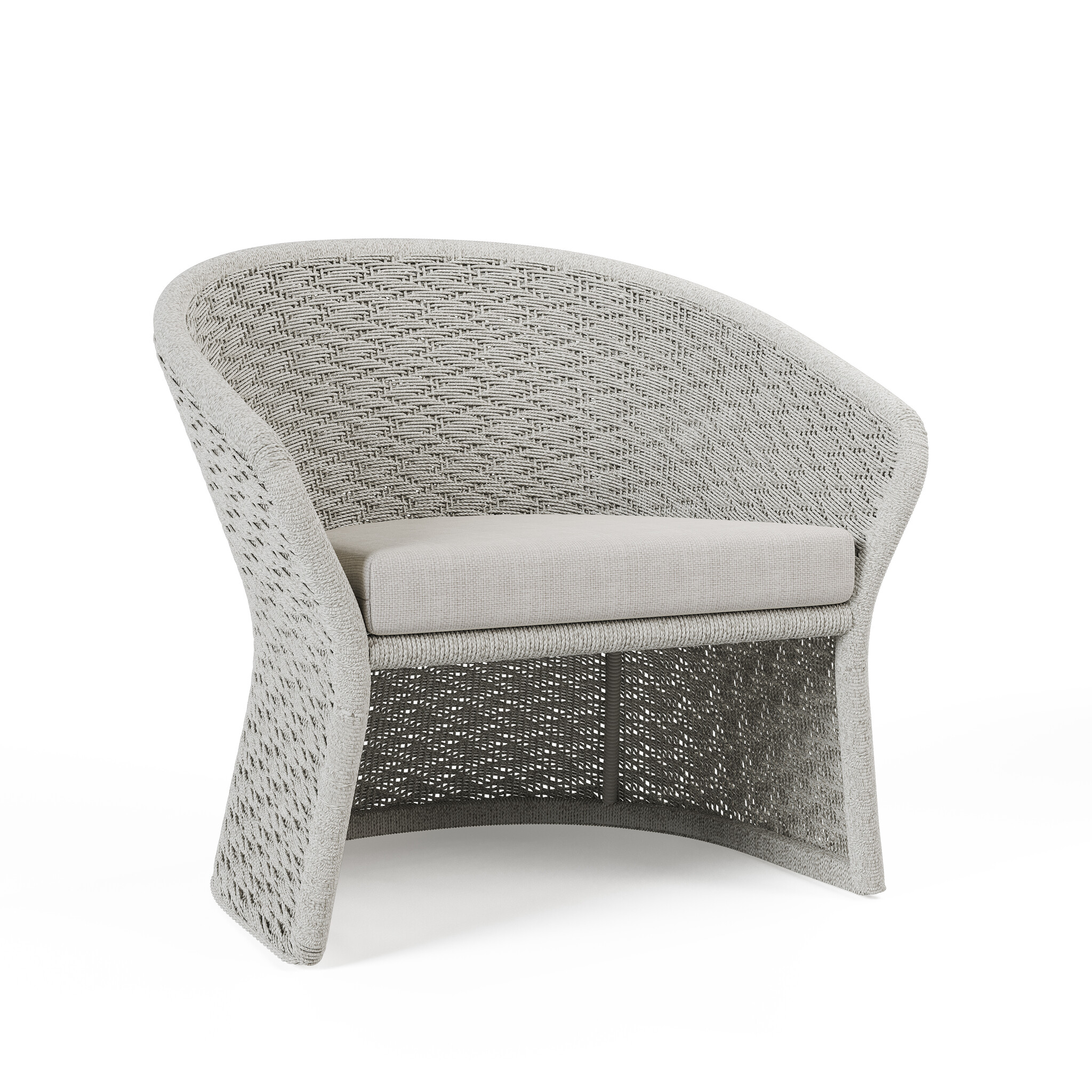 Studio Borek's Veneto collection redefines the use of fibre for today's outdoor living. Instead of approaching the material in a classic way, fibre is used here to create a light, almost floating design with modern shapes and refined details. Both the dining chair and the lounge chair share an elegant, continuous shell shape that feels embracing without looking bulky. Finished in chalk with finely woven fibre in white-grey, the result is a serene and timeless colour palette that effortlessly complements green gardens, Mediterranean terraces and minimalist patios. The dining chair provides support for long evenings at the table, while the lounge chair invites you to relax in comfort. Veneto combines lightness, durability and elegance in a surprisingly modern interpretation of fibre.