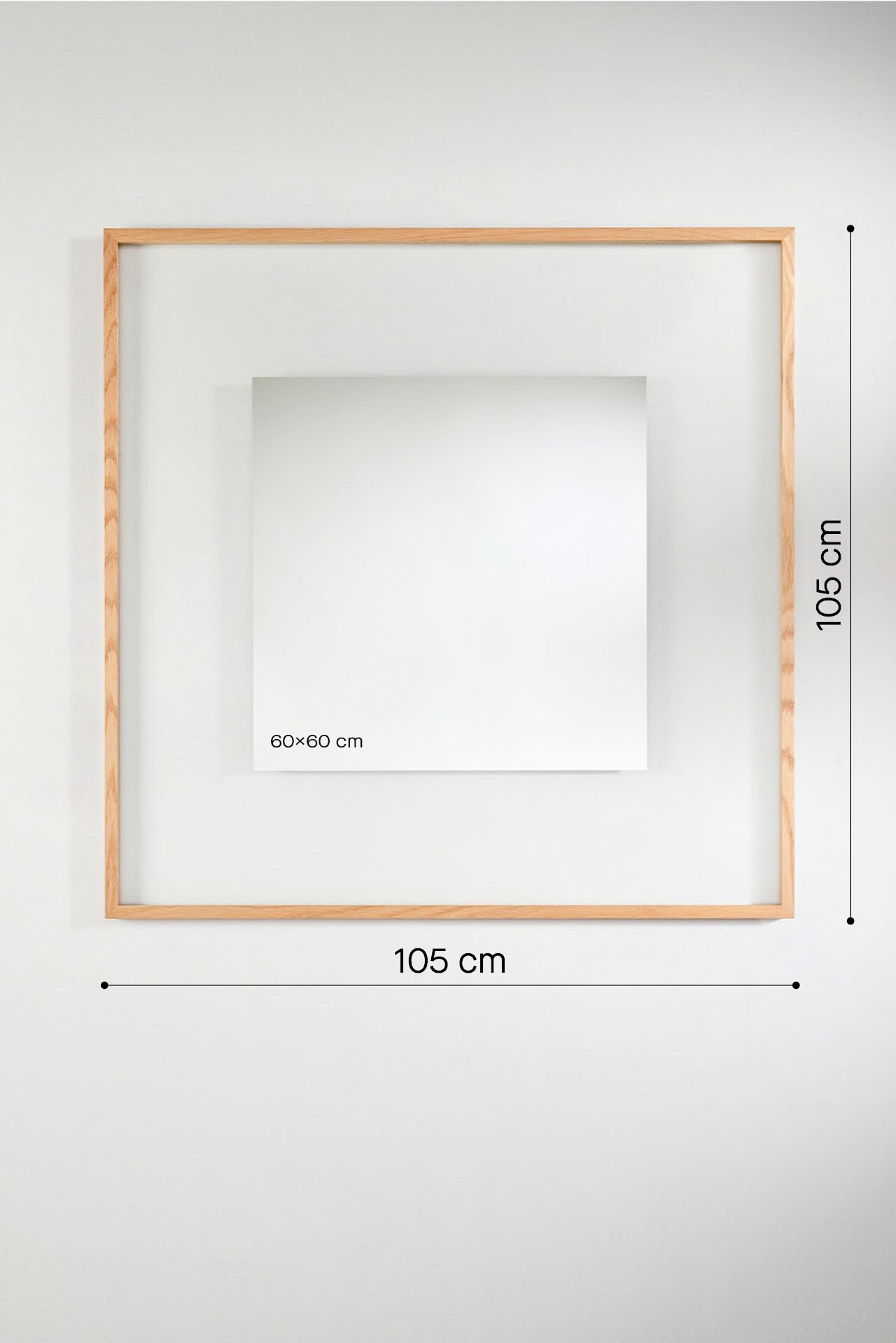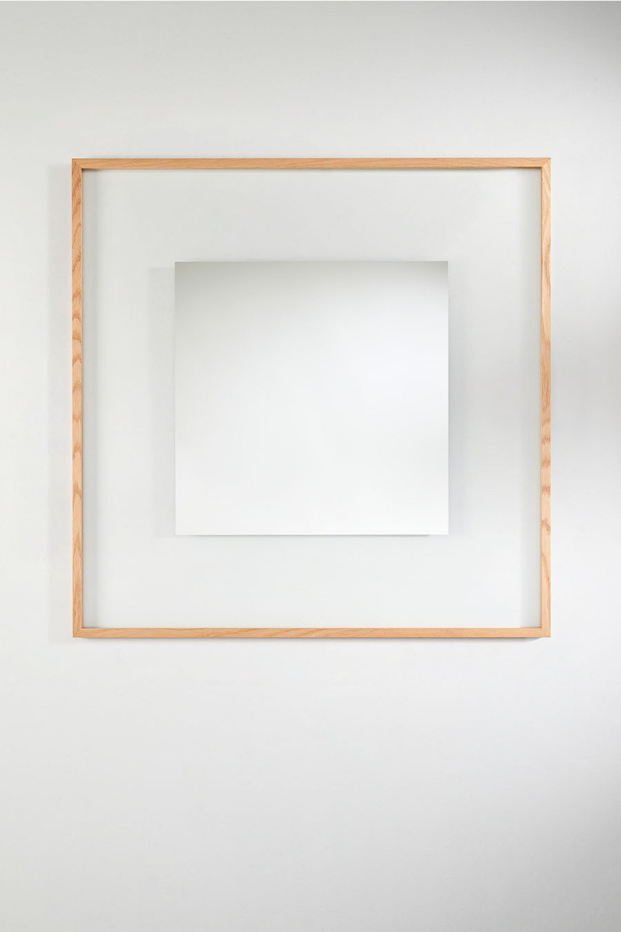 The 'Passepartout Square' mirror by Studio Segers is inspired by museum visits and the way art is presented. The transparent transition between mirror and frame turns the reflection itself into a work of art. The symmetrical oak frame refers to classic painting frames and brings balance and refinement to any interior. Thanks to the subtle separation between the glass and frame, the mirror appears to float and beautifully captures the light. The architectural design provides clarity, structure and tranquillity — a timeless design that seamlessly connects art and interior.