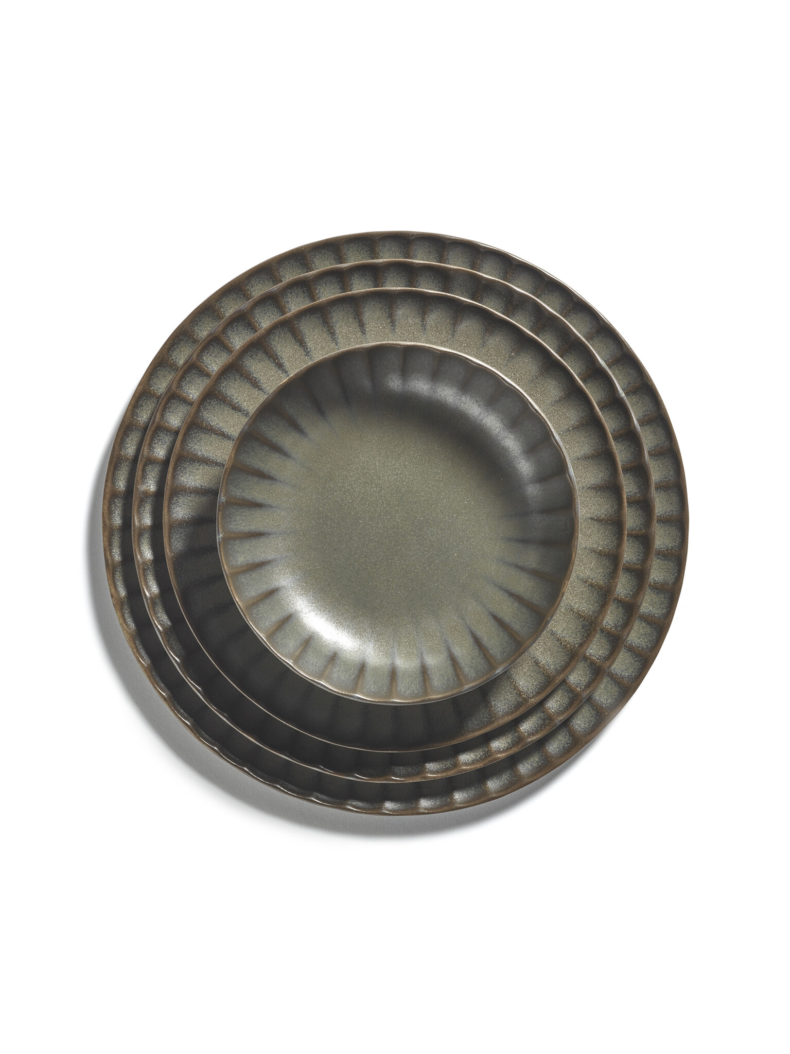 The deep plates in green stone fall seamlessly in line with the Wabi-sabi philosophy that Sergio Herman had in mind. The subtle unevenness created by the glazing layer makes each plate unique. The plates are packed per 2 in a luxury giftbox.