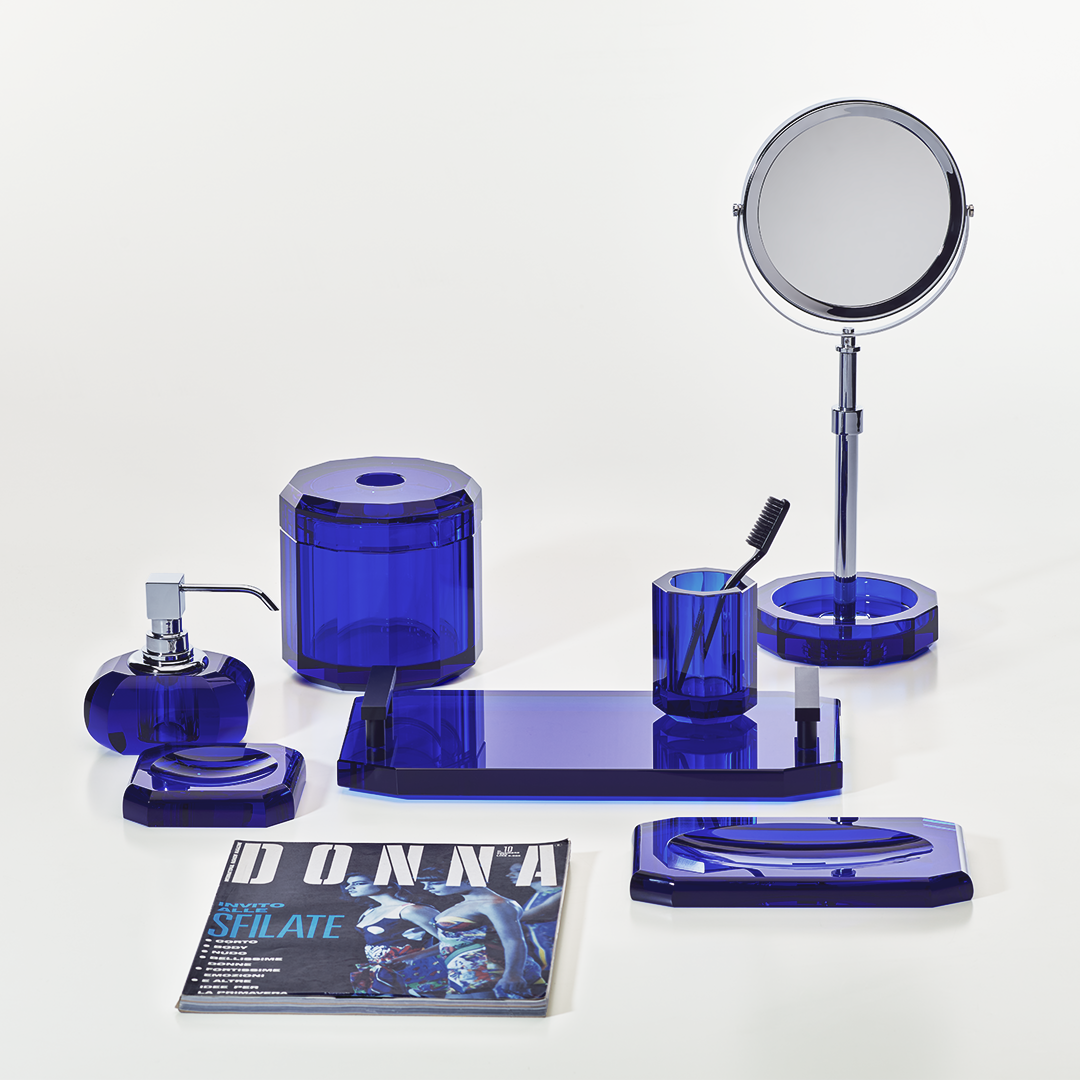 The soap dispenser from the ‘Kristall’ series by the Decor Walther brand is available in various colors.