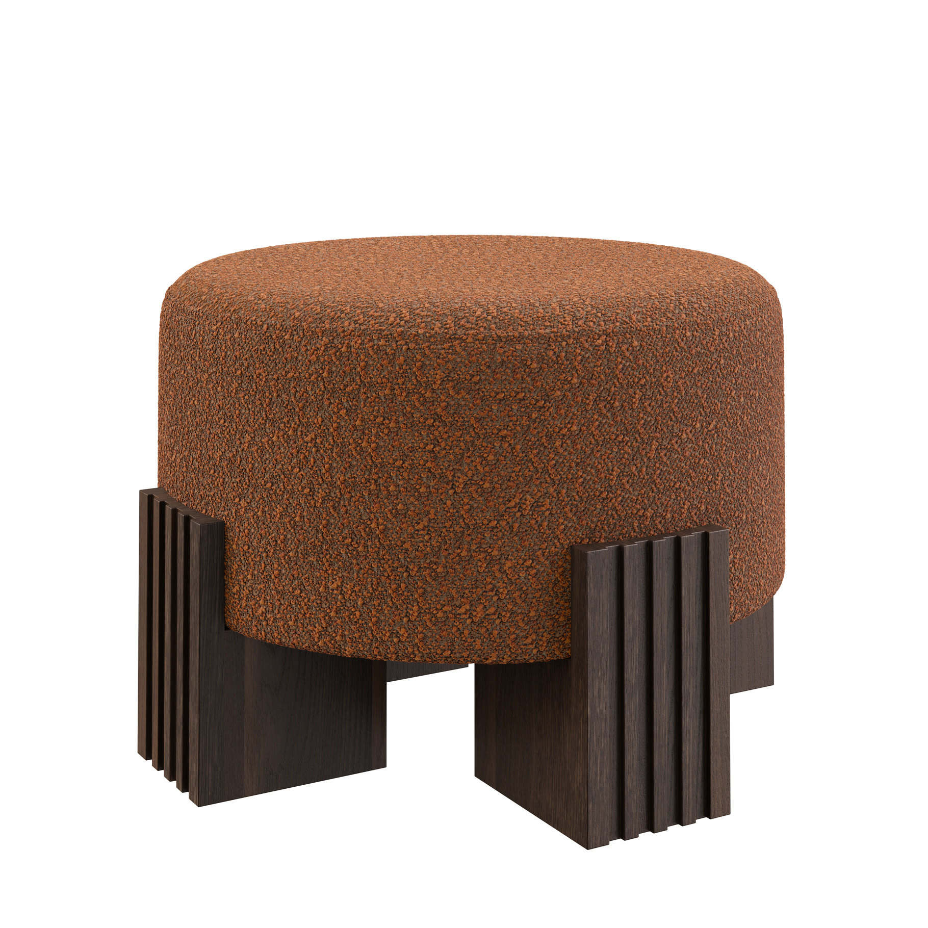 The Clark Stool combines comfort and sophistication in a striking design. This stylish stool is upholstered in the luxurious Philo fabric (100% polyester). The round seat rests on a unique base of beech wood, finished in a deep dark walnut stain. With its compact size (44 cm high, 60 cm diameter), the Clark Stool is perfect as an extra seat, decorative accent or elegant side table.