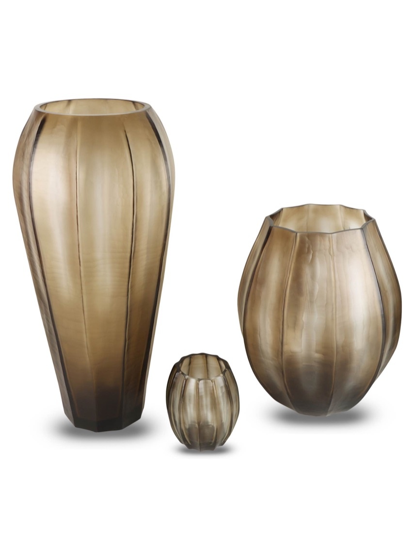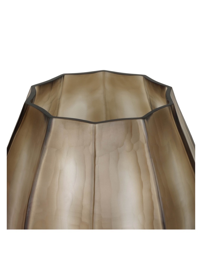 The vase has a modern 'smoke' color and derives the luxurious look from the traditional method of production. Each item is mouth- blown and hand-crafted, so minor imperfections are part of the product. Vase Pyrite is available in 2 different sizes and a tea light , finish your styling in one go by combining different sizes.