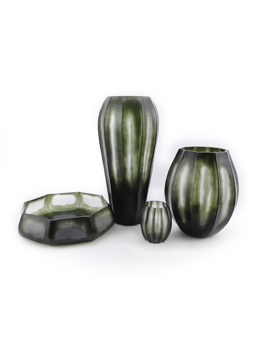 The vase has a modern 'green' color and derives the luxurious look from the traditional method of production. Each item is mouth- blown and hand-crafted, so minor imperfections are part of the product. Vase Pyrite is available in 2 different sizes, a bowl and a tea light , finish your styling in one go by combining different sizes.