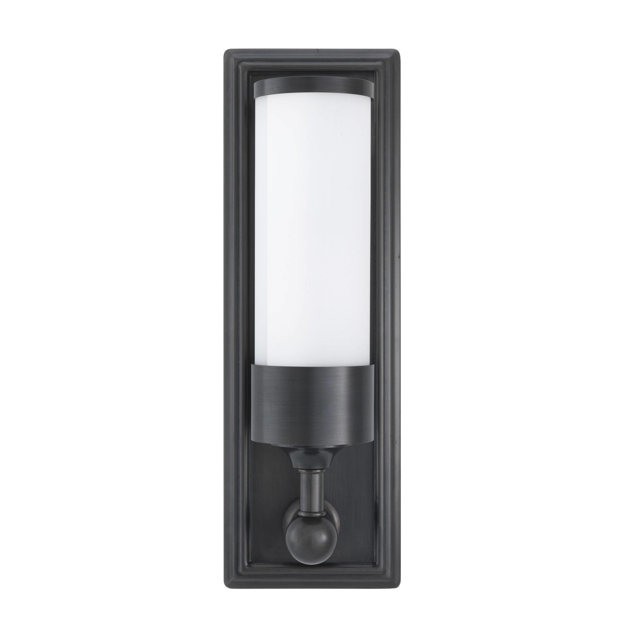 Inspired by antique sconces, the beautiful bronze finished Valentine Wall Lamp brings a soft and warm glow to your home. Featuring a rectangular backplate with a clean-lined arm and a rounded pedestal with a frosted glass cylindrical shade, it's a great addition to any aesthetic.
