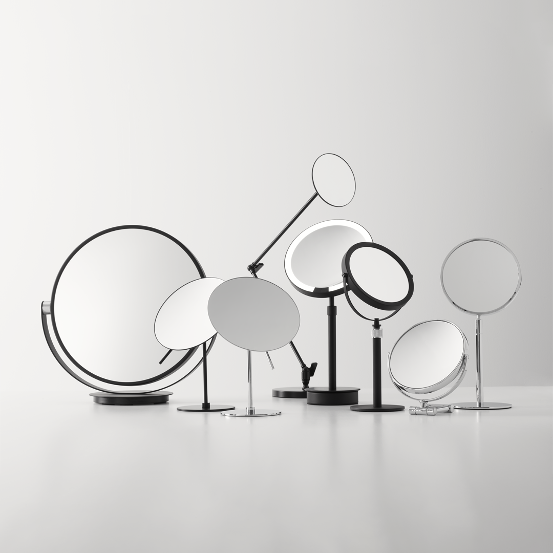 The Vanity Mirror from the ‘Club’ series by the Decor Walther brand is available in various colors, sizes and finishes.