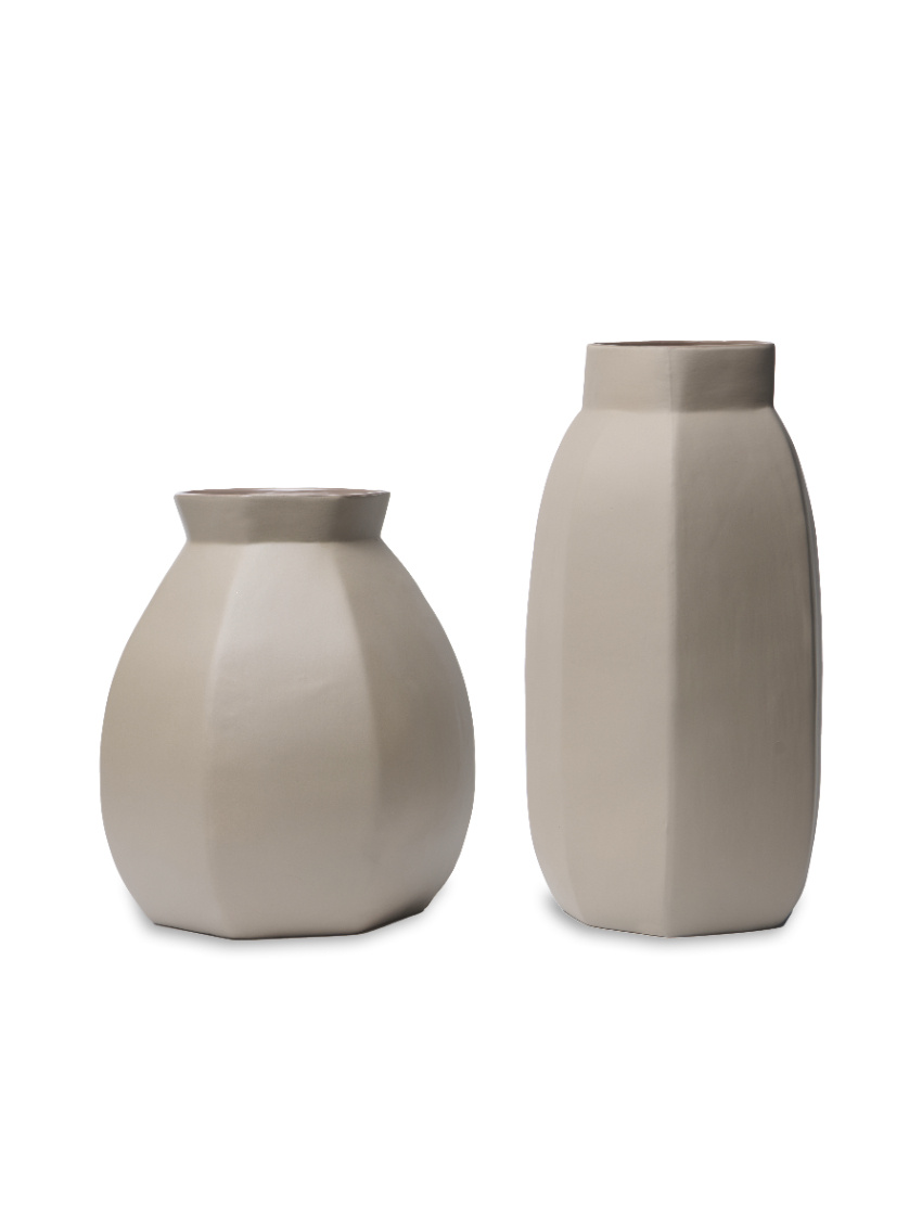 The vase has a modern 'Light Taupe' color and derives its luxurious look from the artisanal method of production. Each copy is hand-finished, which means that small imperfections are part of the product. Vase Elysian is available in 2 different sizes , complete your styling in one go by combining different sizes.