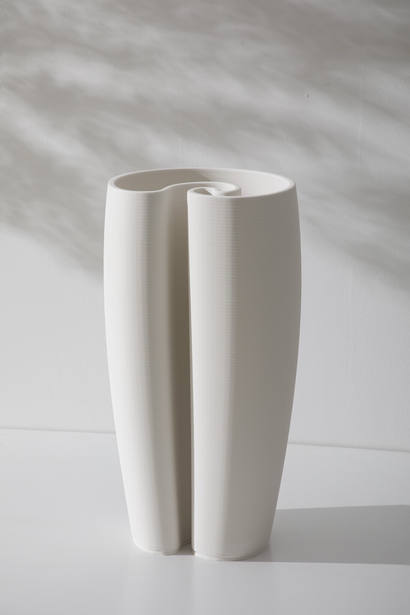 The 3D-printed ceramic vase Eska is a stunning blend of modern technology and timeless art. This unique piece is more than just a vase; it is a statement of elegance and creativity that can embellish any space in the home. Created using advanced 3D printing technology, this ceramic vase displays a complex beauty.