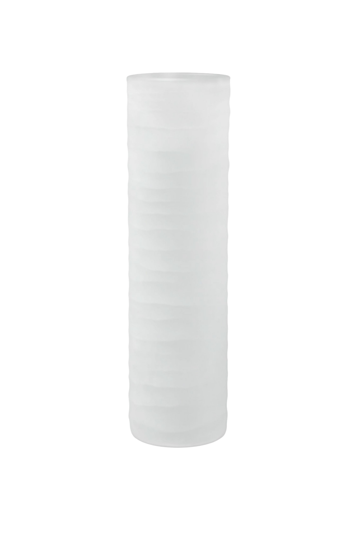 The Ona – Frosted white vase is made from mouth-blown glass, which is then finished by hand to create horizontal textures on the glass. The frosted white colour of the glass gives it an exclusive look.