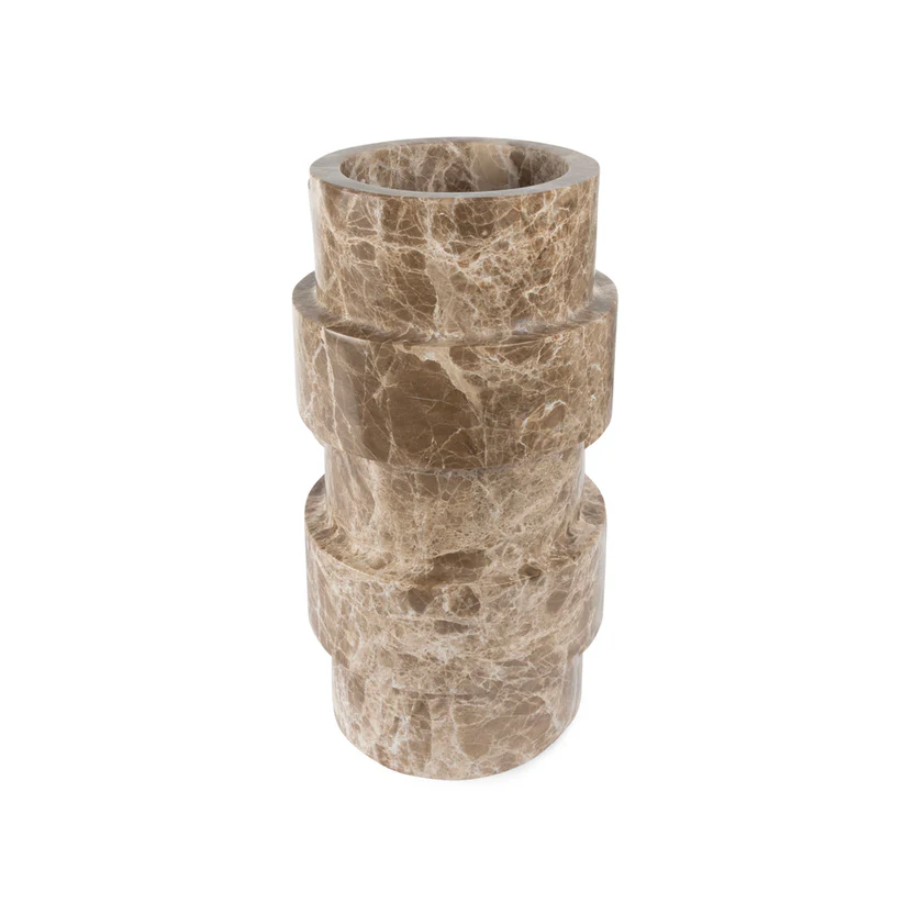 Crafted from elegant brown marble with striking lighter veins, 'Vida' is more than just a vase—it is a work of art. Whether used to hold dried flowers or as a standalone decorative piece, its sculptural curves and timeless appeal bring effortless luxury to any space.
