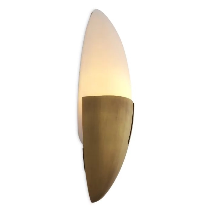 Provide attractive lighting to your hallway, living room or bedroom with the Bernina Wall Lamp. Even in a corridor or study, this Art Deco style wall light can convince. Consisting of an antique brass finished fixture with a decorative slit and a white glass shade, this lovely wall light is characterised by a pointed oval silhouette.
