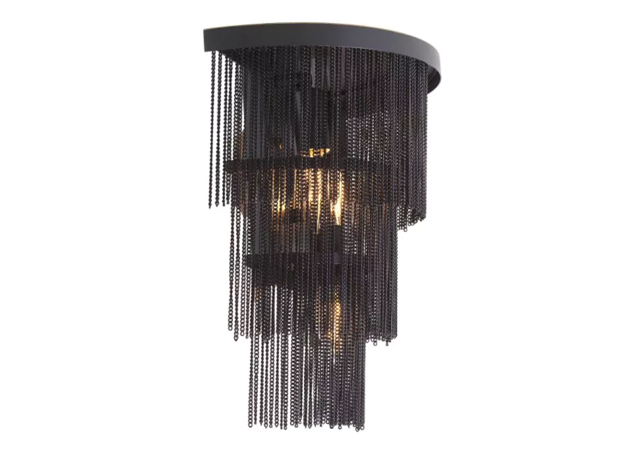 Wall Lamp Tissot radiates the glamour and extravagance of The Great Gatsby. Three tiers of thin chains remind one of fringe flapper dresses from the 1920s. Provided with a bronze highlight finish, this wall lamp lends a chic touch to your space. Combine with the Tissot Chandeliers for added dimension.
