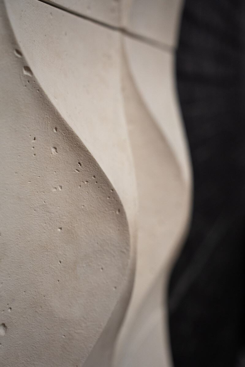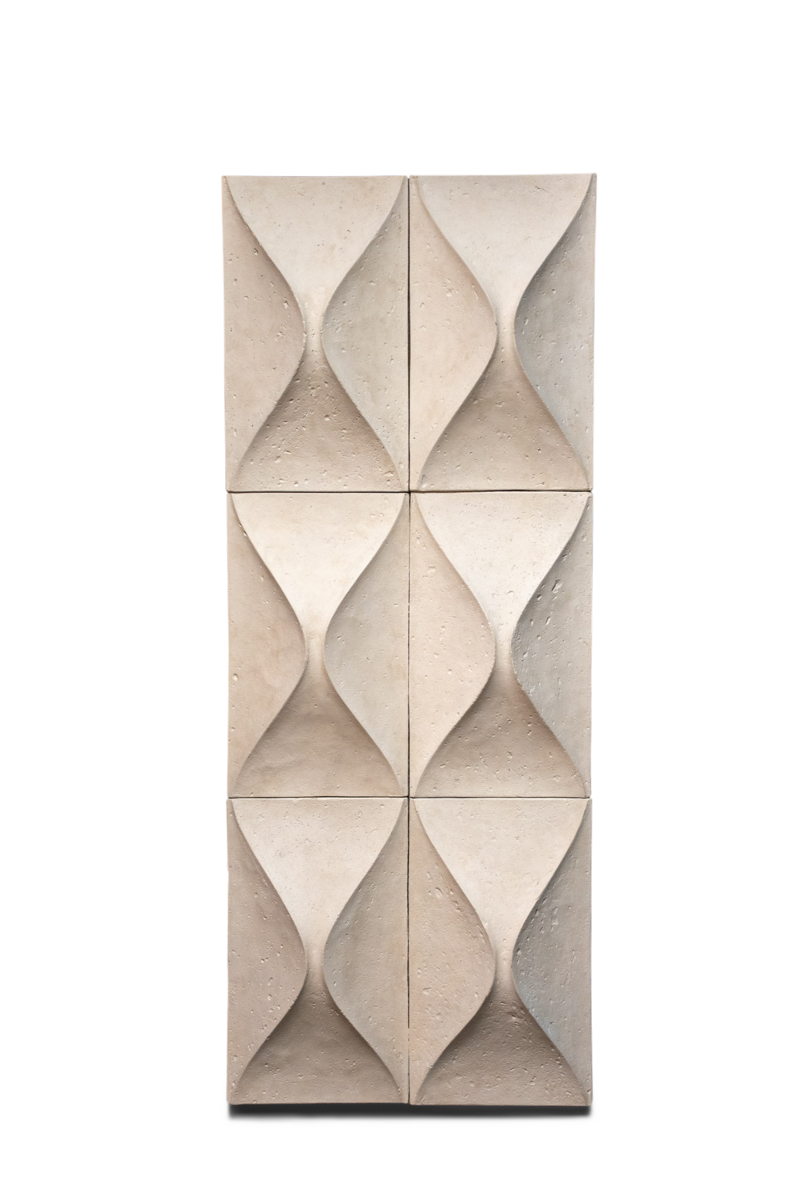The Isac wall panel is a decorative panel with 3D shapes, made from volcanic ash. This makes each panel unique.