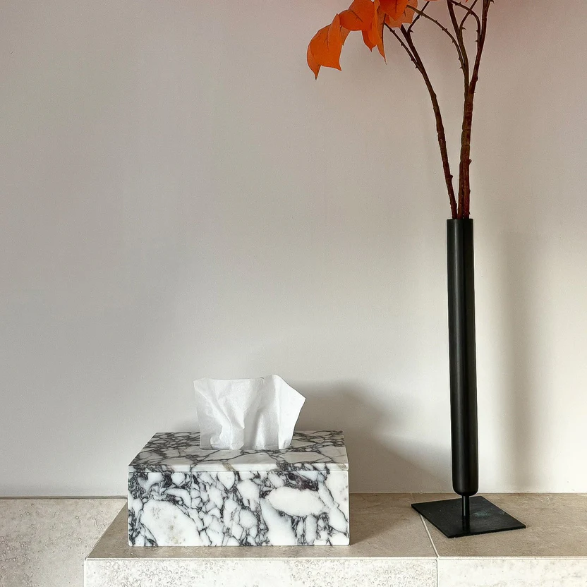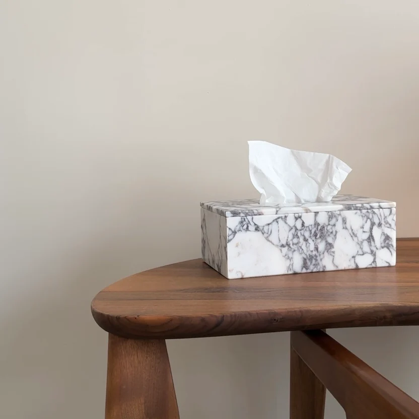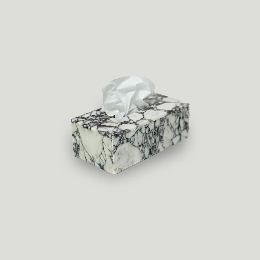 Apportez une touche d'élégance raffinée à votre intérieur avec notre tout nouveau porte-mouchoirs en marbre Calacatta. Conçu pour allier harmonieusement fonctionnalité et sophistication, cet objet d'exception sublimera n'importe quelle pièce.