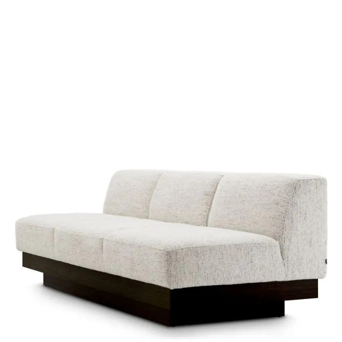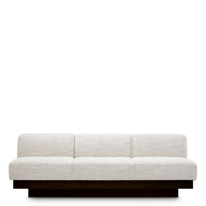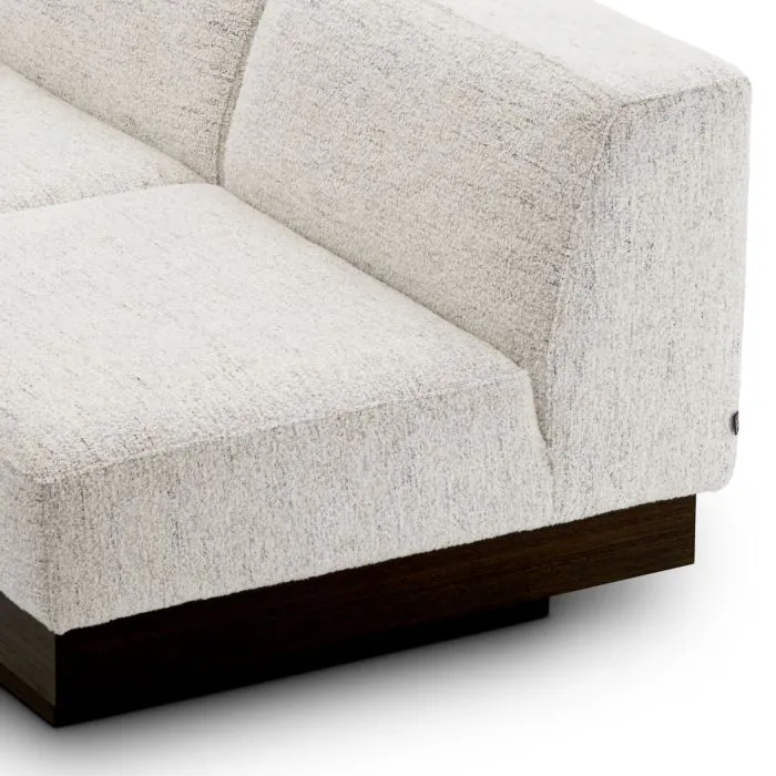 Incarnant un minimalisme raffiné, le canapé Bastion se caractérise par un tissu blanc cassé couleur coquillage qui enveloppe une silhouette élégante sans accoudoirs, reposant sur une base en placage charbon. Ce contraste harmonieux entre les tons doux et les surfaces texturées crée une présence accueillante et sophistiquée, parfaite pour ceux qui apprécient le luxe subtil et l'élégance moderne.