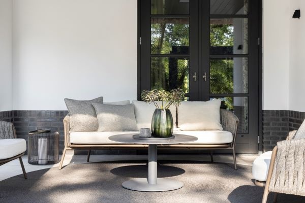 Vous pouvez placer le canapé Genua en solo ou le combiner joliment avec le fauteuil. Ajoutez, par exemple, un pouf Crochette - équipé d'un revêtement crocheté dans des tons naturels - et vous n'aurez plus qu'une envie : passer des heures à l'extérieur.