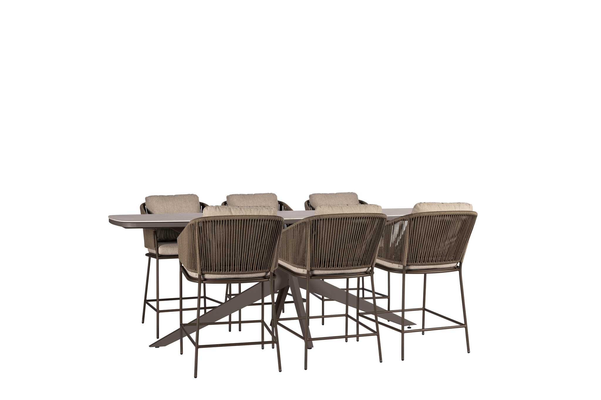 La chaise haute Forio allie un design moderne à un confort d'assise haut de gamme. Elle est disponible en aluminium Salix ou Bronze, toutes deux équipées d'une corde dans les tons assortis Salix et Toffee. Le caractère léger du Salix confère un aspect frais et naturel, tandis que la version Bronze ajoute de la chaleur et de la profondeur à l'espace extérieur. La corde soigneusement tressée souligne le look raffiné et contemporain de la chaise dans les deux versions. Les coussins tout temps Flax Beige doux offrent un confort durable et conservent leur forme et leur couleur, même dans des conditions météorologiques changeantes. Cela rend la chaise haute Forio idéale pour les longues soirées autour d'une table haute ou d'un bar extérieur. Grâce à l'utilisation de matériaux durables et faciles d'entretien, la chaise reste belle et agréable à utiliser année après année. La chaise haute Forio est le choix parfait pour ceux qui souhaitent allier un design élégant, le confort et une expérience de détente en plein air dans le style reconnaissable de YOI.