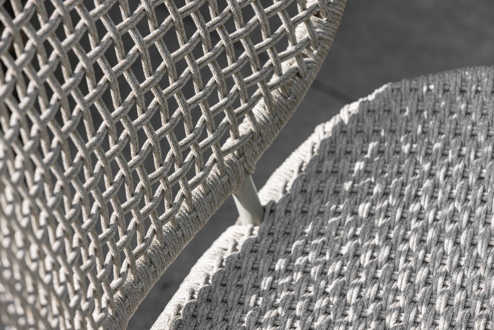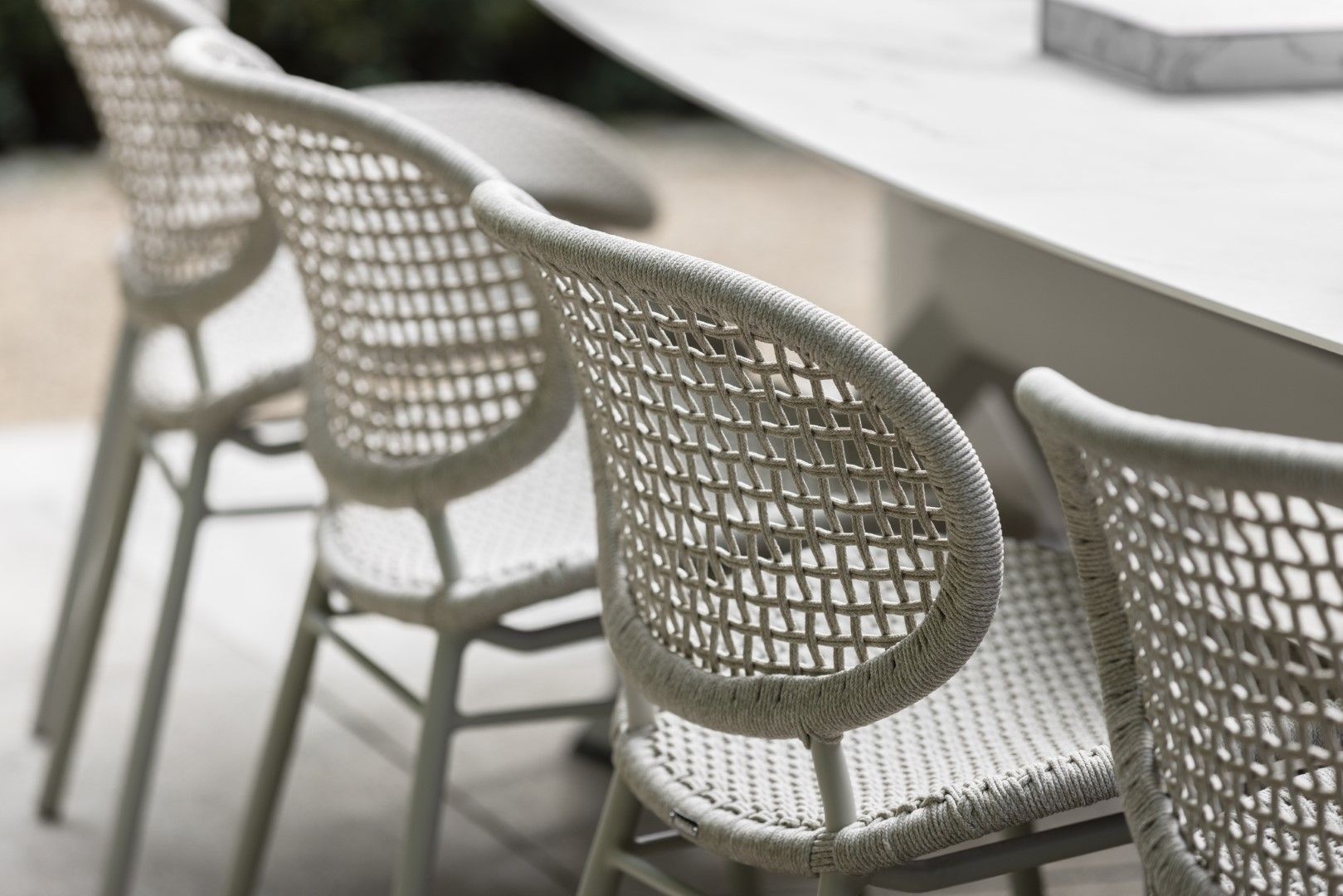 L'osier Ardenza est recouvert d'une corde blanc-taupe, combinée à la teinte craie de la structure: ensemble, ils forment une étonnante palette de couleurs claires et terreuses. L'osier de haute qualité offre un soutien ferme et très confortable. Le coussin d'assise optionnel, dans la teinte dune, présente un design moderne et épuré.