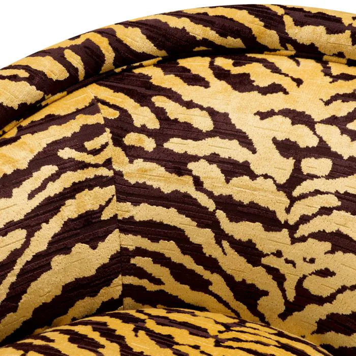 La chaise pivotante Catene apporte une touche audacieuse et luxueuse à votre espace. Dotée d'un tissu imprimé tigre brun tigris saisissant, cette chaise est construite sur une base pivotante pour allier style et fonctionnalité. Le motif audacieux ajoute une touche unique, tandis que le design confortable en fait un élément parfait pour votre salon, votre bureau ou votre espace détente.