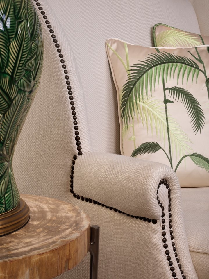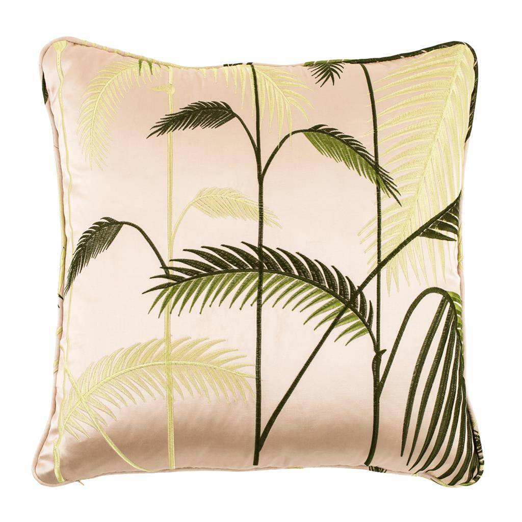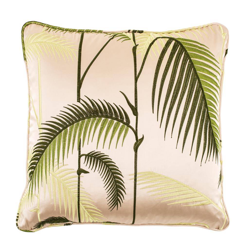 Coussin décoratif Sumba de la marque de luxe Eichholtz avec de belles feuilles de palmier brodées.