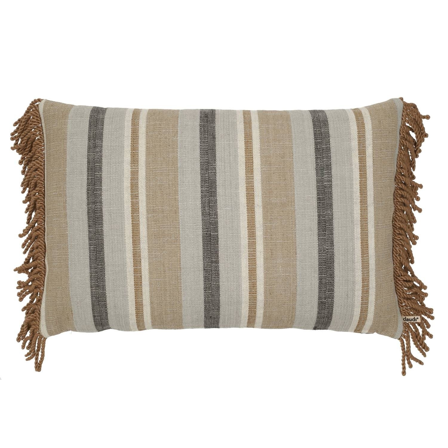 Coussin décoratif Viviano Sand/Anthracite + Bullion Fringe Dark Gold