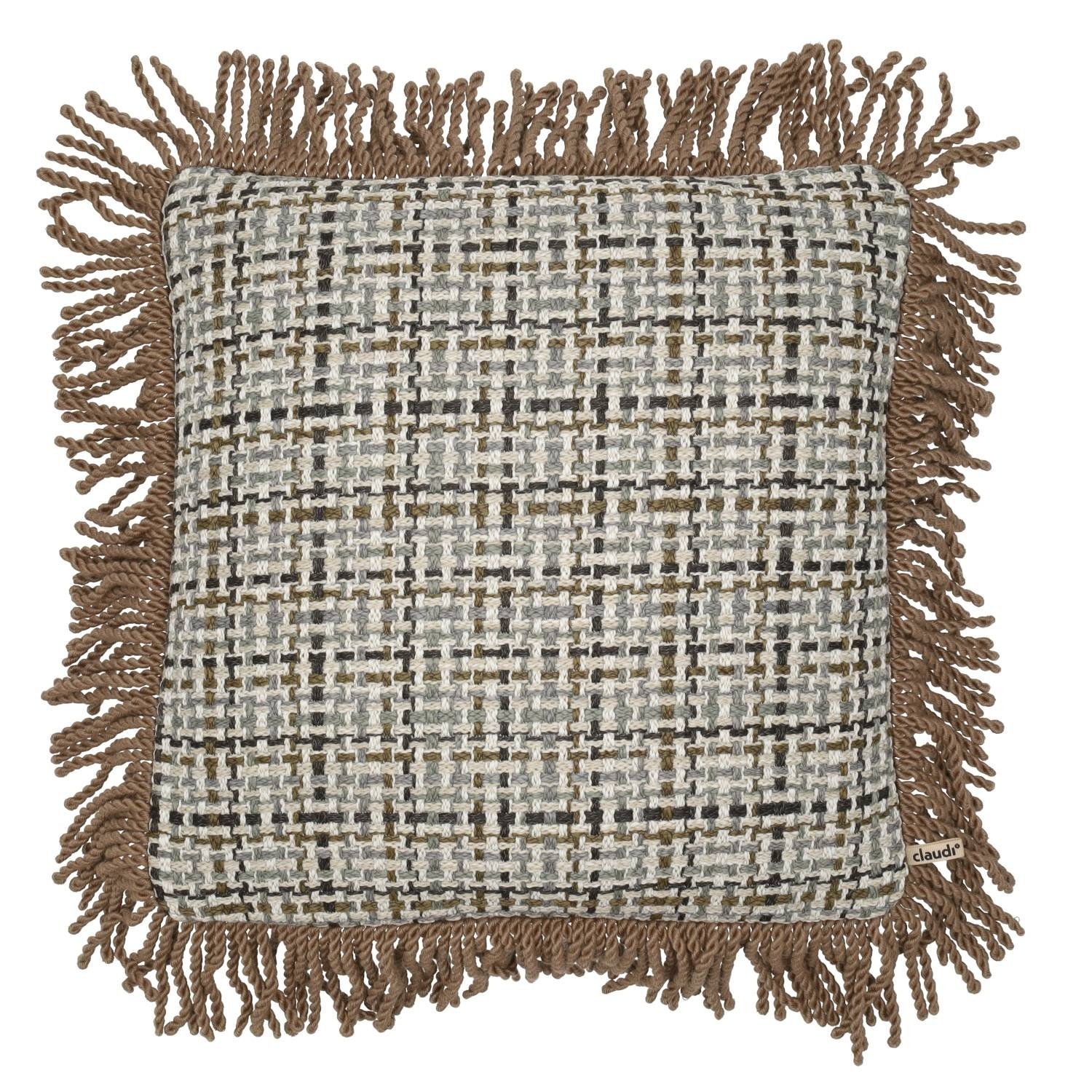 Coussin décoratif Zeno Olive/Grey + Bullion Fringe Cappuccino