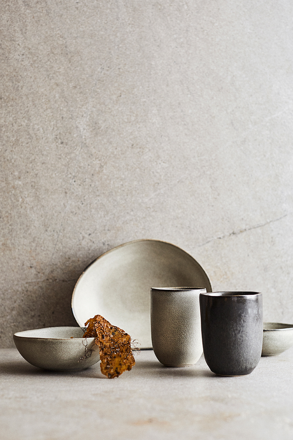 Le mug 'Mame' de Muubs fait partie de la collection en grès et est proposé en lot de deux. Ce mug en céramique, d'aspect artisanal, possède une apparence unique car les moules utilisés pour sa production ne sont pas identiques. La série Mame s'inspire de la forme naturelle du haricot (Mame en japonais) et utilise un émail réactif qui n'est jamais exactement identique, ce qui signifie que chaque article Mame varie légèrement.