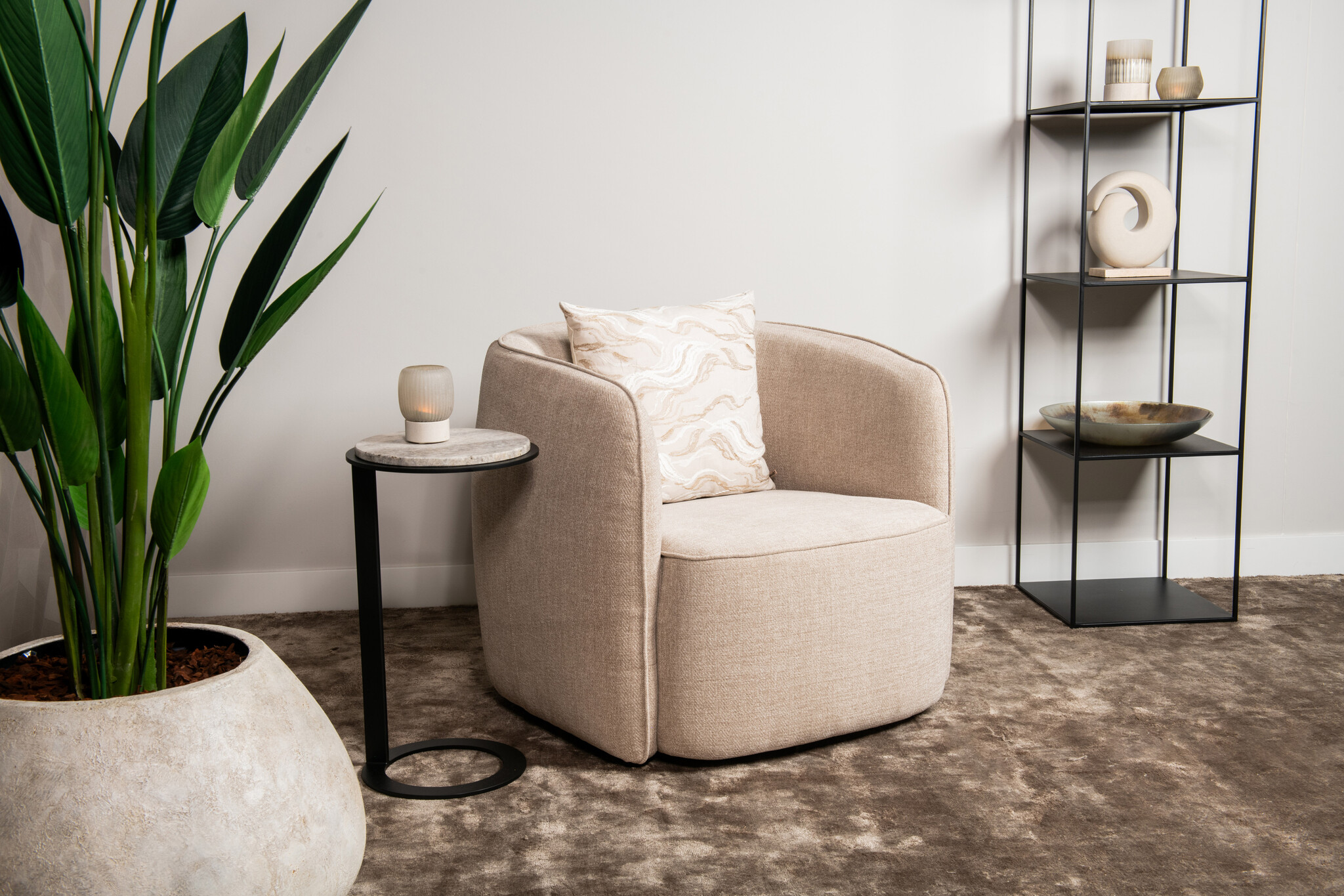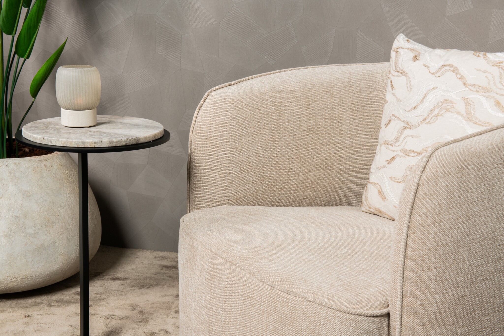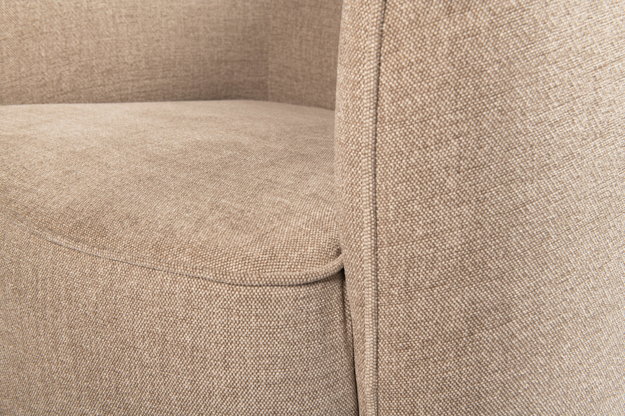 Le spacieux fauteuil FREDERICK a une allure moderne grâce à ses jolis détails arrondis. Le tissu doux 'Brownish Grey' a une touche de légèreté dans une couleur marron clair chic, facile à combiner. Le passepoil donne à ce fauteuil un cachet supplémentaire. Pratique : Frederick est revêtu du tissu CareClean, une nanotechnique révolutionnaire qui imprègne les fibres textiles et rend le tissu facile à nettoyer. Un accident ? Il suffit de passer un chiffon en microfibres et de l'eau pour faire disparaître la tache.