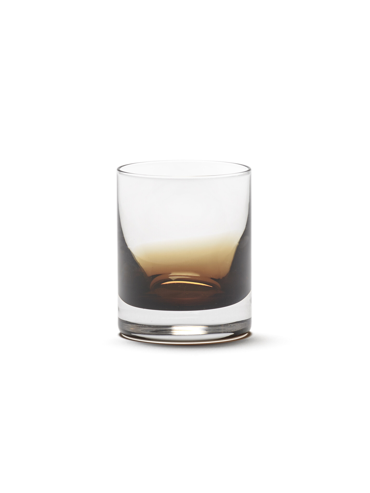Outre la vaisselle en porcelaine, Kelly Wearstler a créé des objets en verre aux teintes ambrées, si largement utilisées dans la verrerie ancienne et vintage à travers le monde. L'effet unique de progression des couleurs est obtenu en utilisant trois couches de verre : la masse de couleur ambre est injectée entre deux couches de verre transparent. La couleur aérée contraste magnifiquement avec la base épaisse et distinctive en verre et la forme droite et épurée de ces verres à pied. Les verres sont emballés par 4 dans un luxueux giftbox.