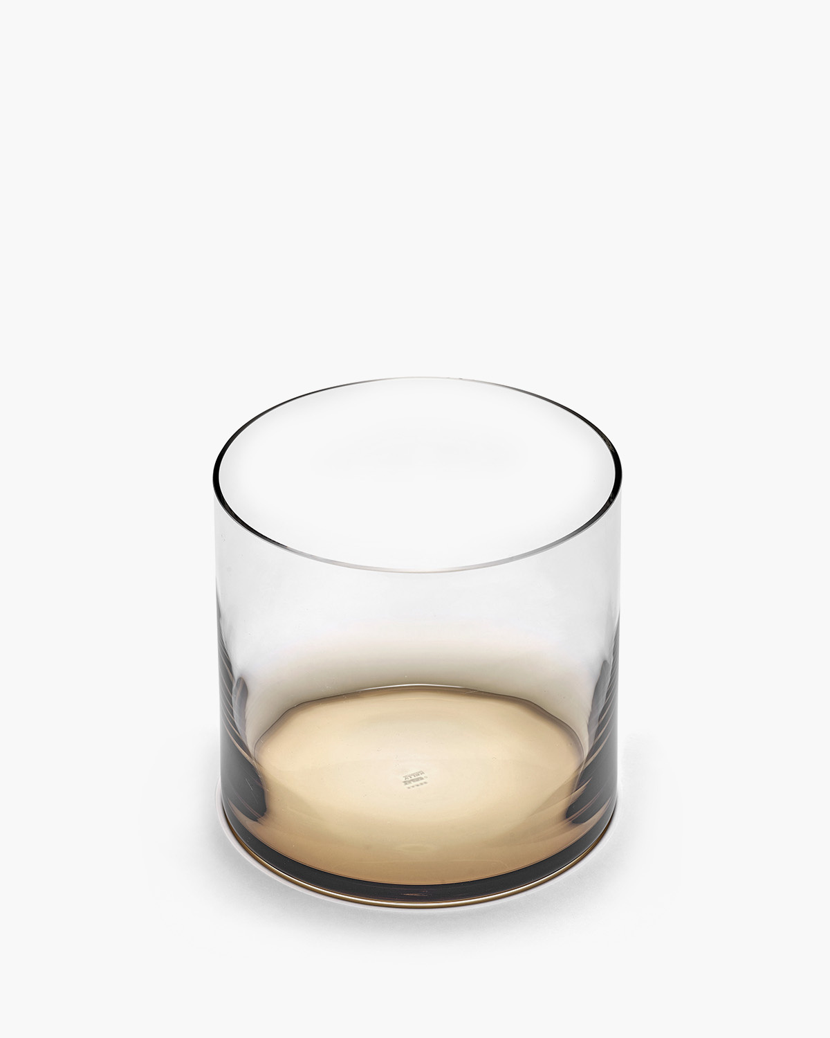Outre la vaisselle en porcelaine, Kelly Wearstler a créé des objets en verre aux teintes ambrées, si largement utilisées dans la verrerie ancienne et vintage à travers le monde. L'effet unique de progression des couleurs est obtenu en utilisant trois couches de verre : la masse de couleur ambre est injectée entre deux couches de verre transparent. La couleur aérée contraste magnifiquement avec la base épaisse et distinctive en verre et la forme droite et épurée de ces verres à pied. La vase est emballée dans un luxueux giftbox.