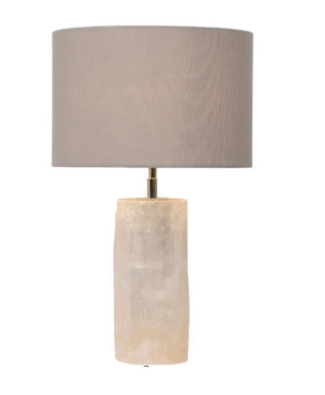 La lampe de table Minas est fabriquée en sélénite, un minéral dont l'aspect rappelle celui du cristal de roche. Le matériau crée une réflexion subtile de la lumière, donnant à la lampe un aspect calme et naturel. Convient à différents styles d'intérieur.
