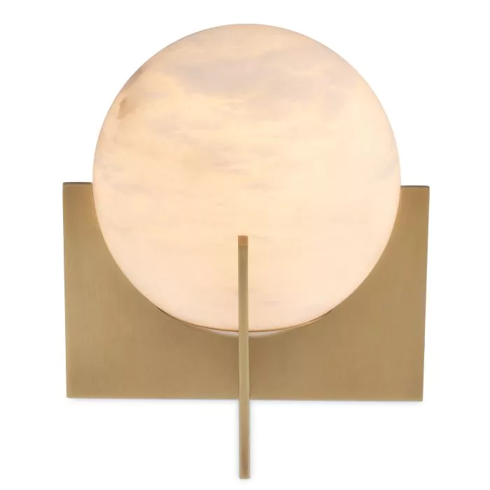 La lampe de table Scorpios S rappelle la lune grâce au motif veiné de sa sphère en albâtre. La base simple de cette lampe de table minimaliste présente une finition en laiton antique. Vous pouvez donner à la lumière un aspect blanc chaud ou blanc brillant, selon le type d'ampoule que vous utilisez.