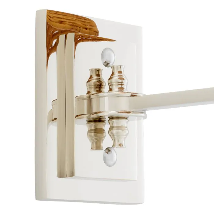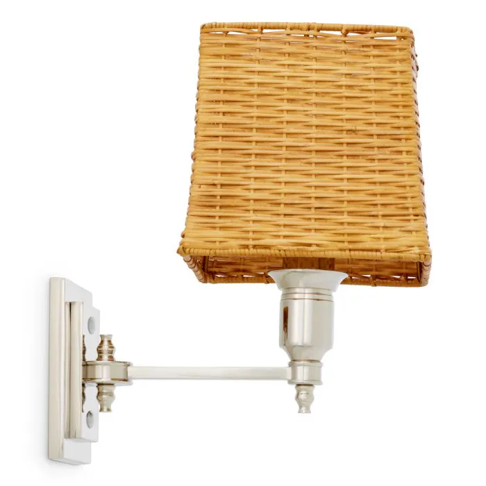 Incarnant le luxe raffiné, l'applique murale Lexington Single présente une finition nickelée associée à un abat-jour en rotin qui rehausse son caractère gracieux. Son éclat métallique élégant accentue les intérieurs sophistiqués, ajoutant une touche subtile d'élégance rayonnante et de charme intemporel aux espaces de vie raffinés.