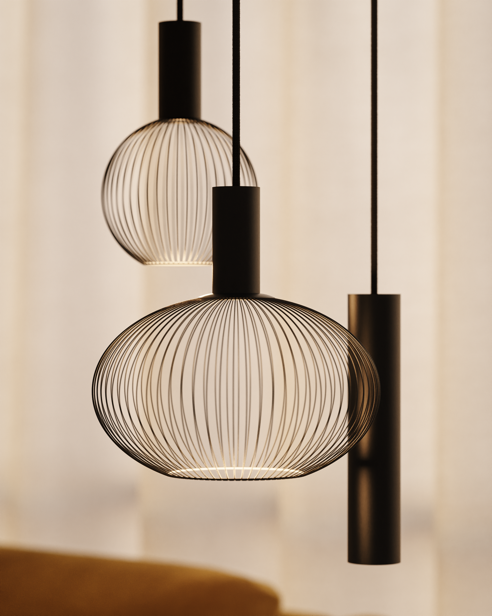 Sa lumière, chaleureuse et douce, reste fonctionnelle grâce à une répartition équilibrée. C'est le luminaire idéal au-dessus d'une petite table à manger, dans un coin salon, ou comme éclairage d'appoint dans un intérieur plus spacieux.