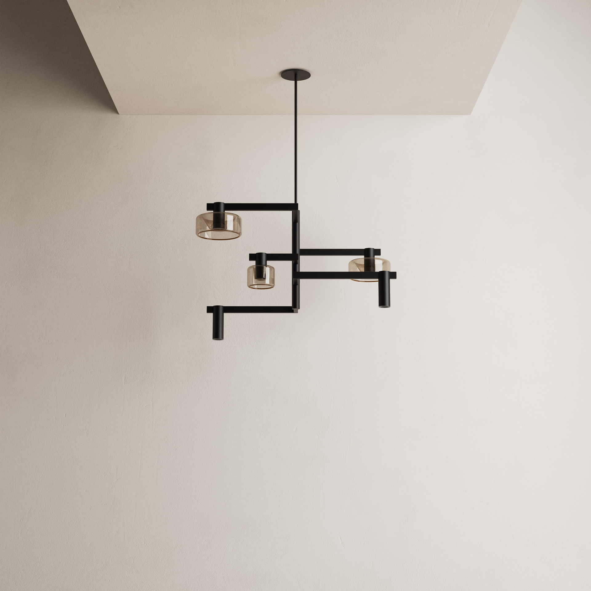 Tout comme son prédécesseur, Palau 2110 repose sur un cylindre en acier, avec cinq bras divergents qui portent chacun leur propre source lumineuse. Trois bras sont équipés d'un Ghost Line Donut, deux d'un spot. Ensemble, ils forment un éclairage équilibré qui allie chaleur et fonctionnalité.