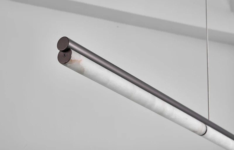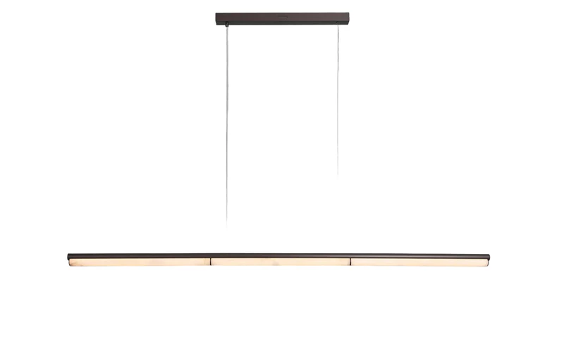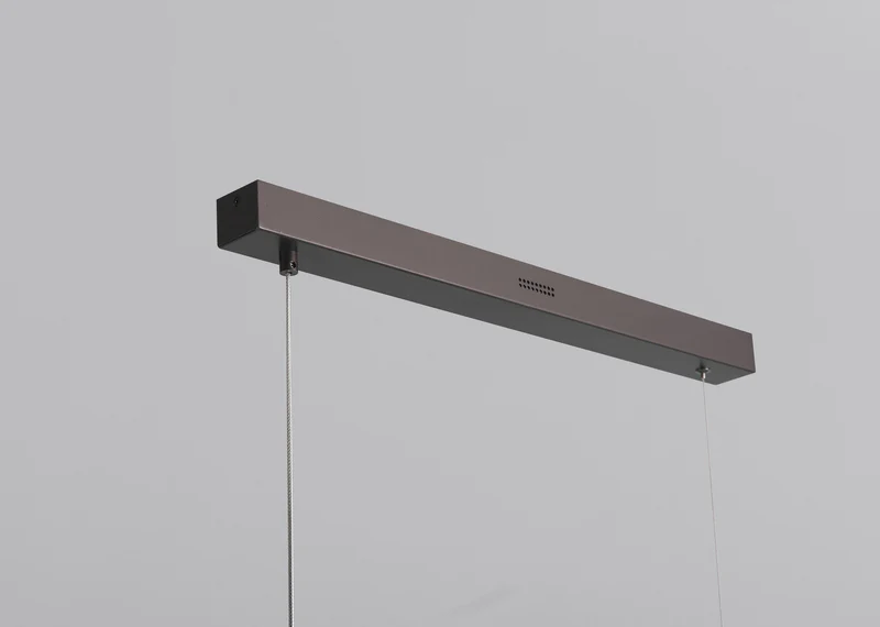 Le lustre Viglia est conçu pour offrir aux longues tables et aux îlots de cuisine un éclairage plus structuré et plus chaleureux. Sa composition linéaire est adoucie par la répétition d'éléments lumineux, créant ainsi un rythme sans alourdir visuellement l'espace. Le luminaire met en valeur la surface qu'il éclaire tout en conservant une impression d'ensemble sobre. Il convient parfaitement aux salles à manger et aux cuisines où un seul luminaire suspendu doit apporter à la fois de l'ordre et un éclairage d'ambiance.