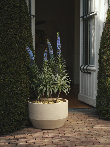 Ces jardinières en faïence de Marie Michielssen font partie de la collection Construct. Avec des formes simples et pures et des proportions inspirées de l'architecture, elles offrent une interprétation contemporaine des formes anciennes. Leur aspect à la fois moderne, terreux et primitif en fait des objets de décoration idéaux. Pour l'intérieur, ne pas planter directement dans le pot. Pour l'extérieur, un trou de drainage doit être percé.