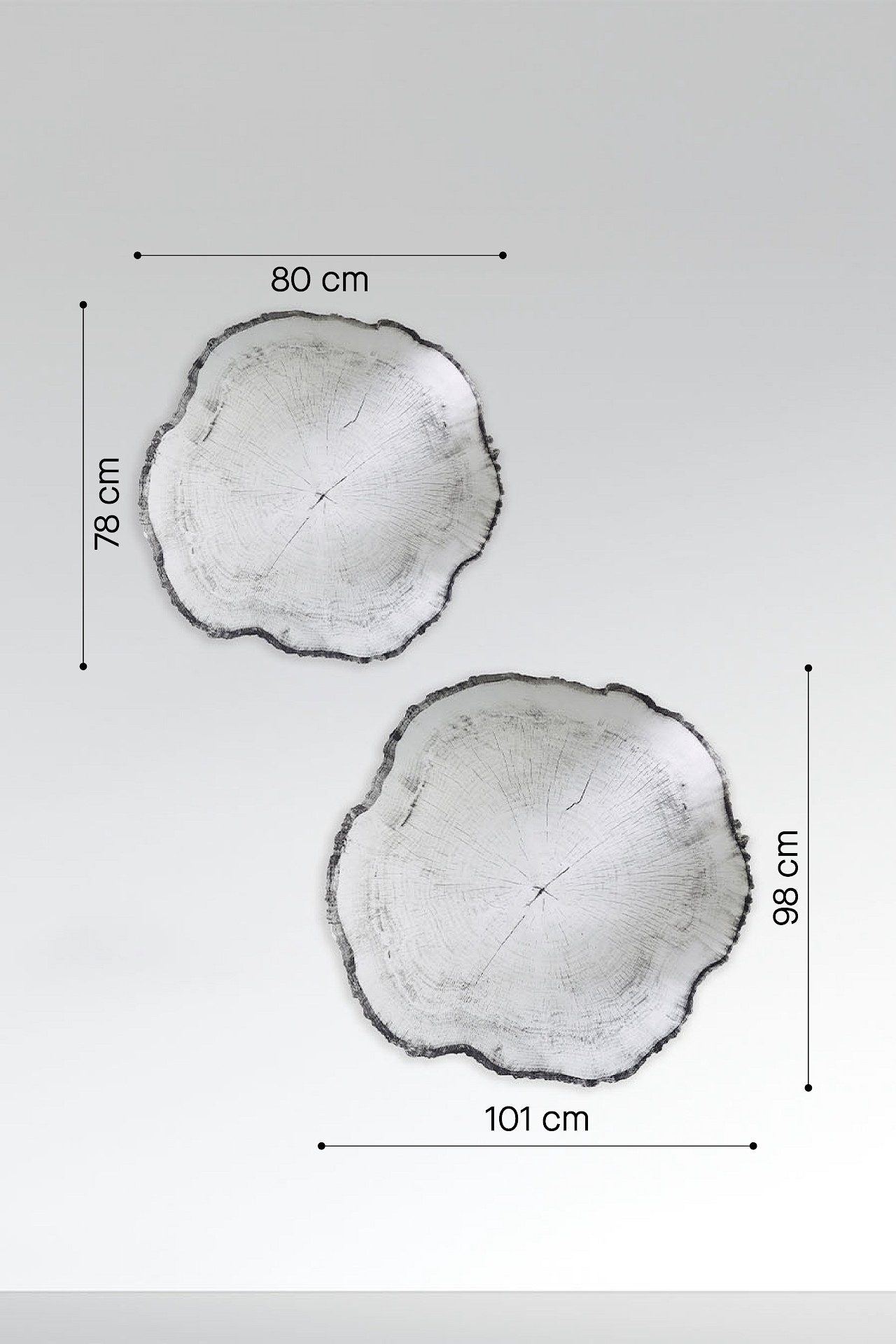 Le set de miroirs 'Arbo Dark' se compose du grand Arbo Dark L et du plus petit Arbo Dark M, qui, ensemble, apportent une touche visuelle forte à votre intérieur. Inspirés des cernes naturels du bois, ces miroirs allient un design robuste à un verre raffiné.