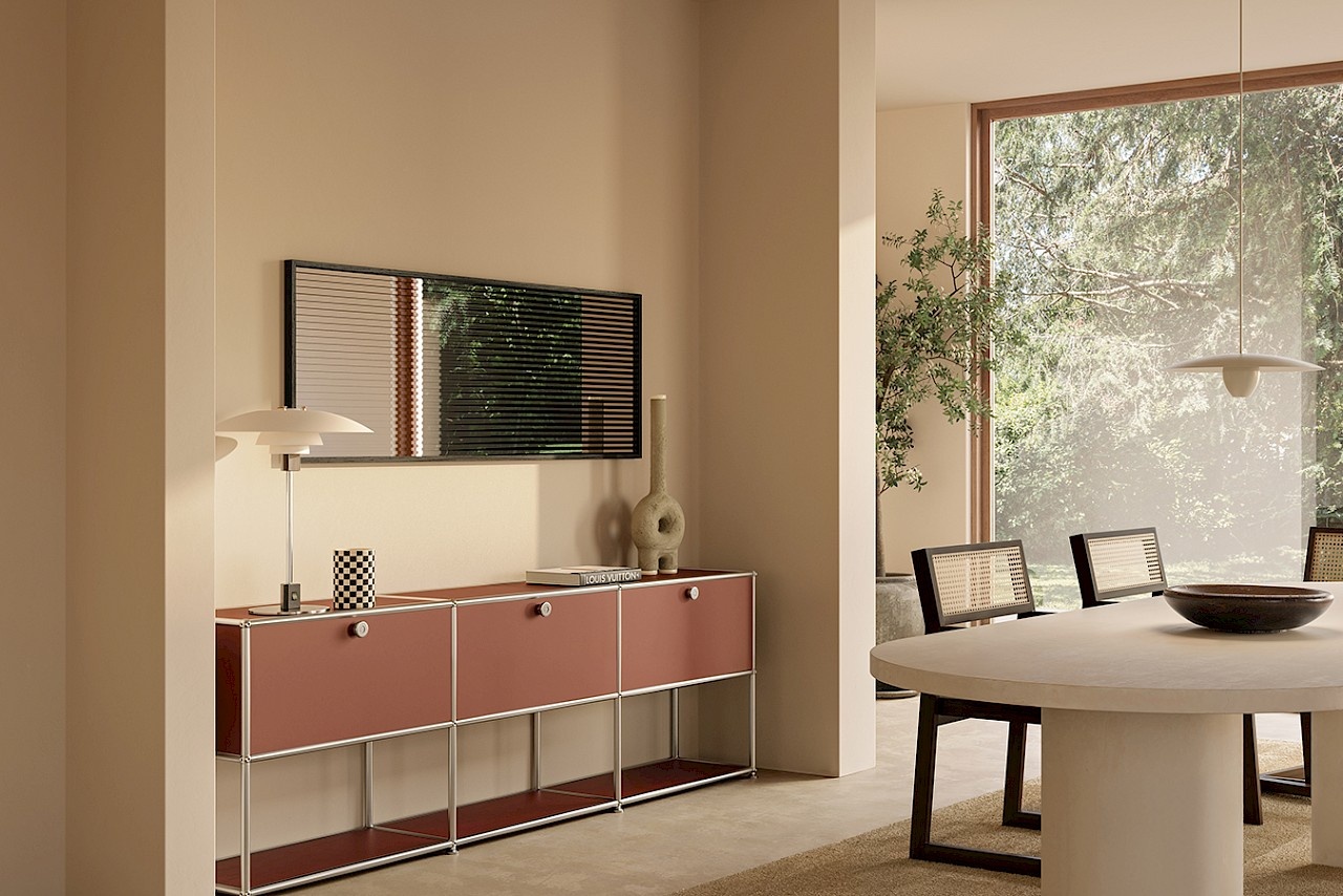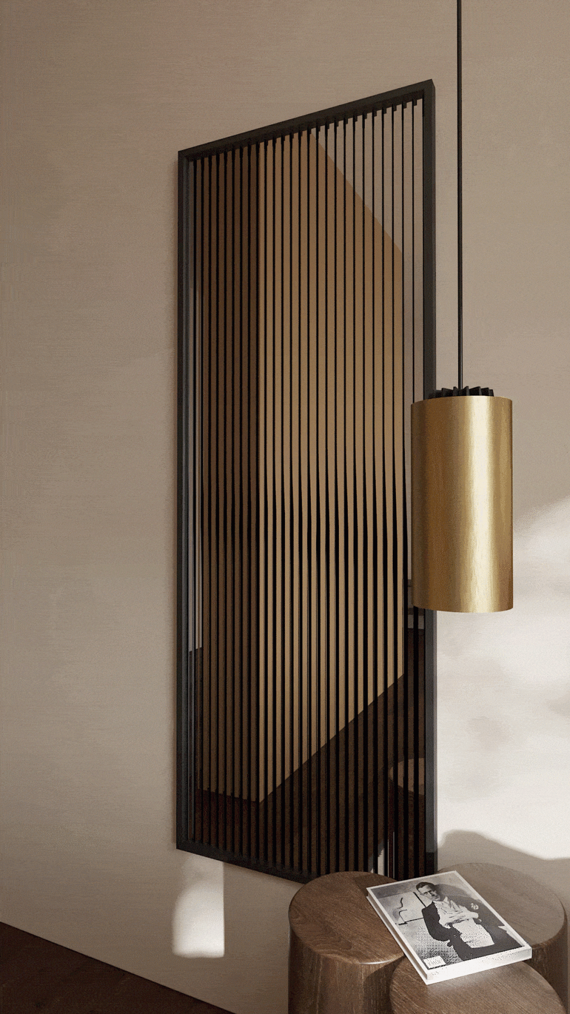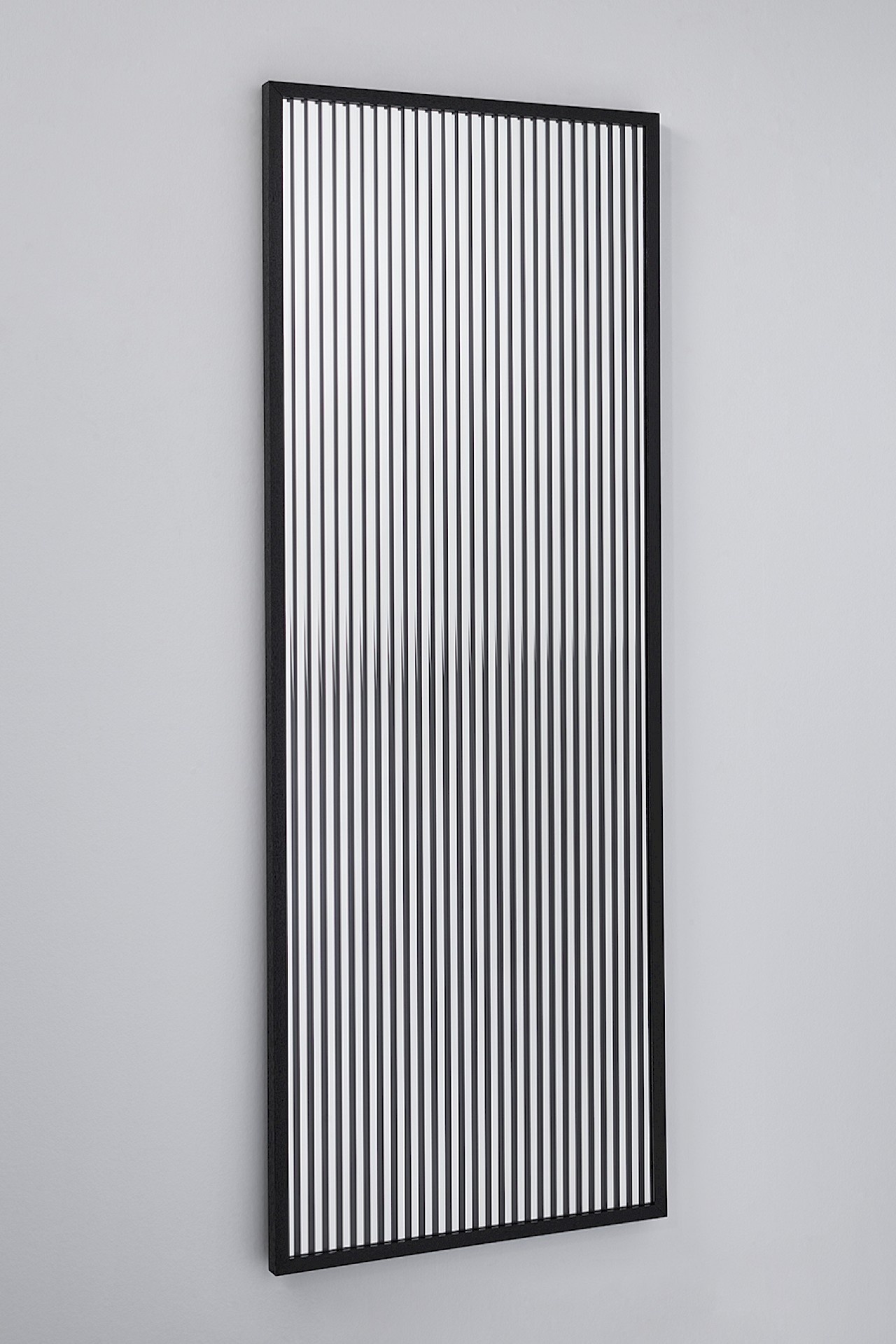 Lorsque vous vous déplacez devant le miroir, les bandes semblent se déplacer et créer sans cesse de nouveaux reflets. 'Attitude' devient ainsi un élément dynamique dans la pièce qui ne cesse de surprendre.