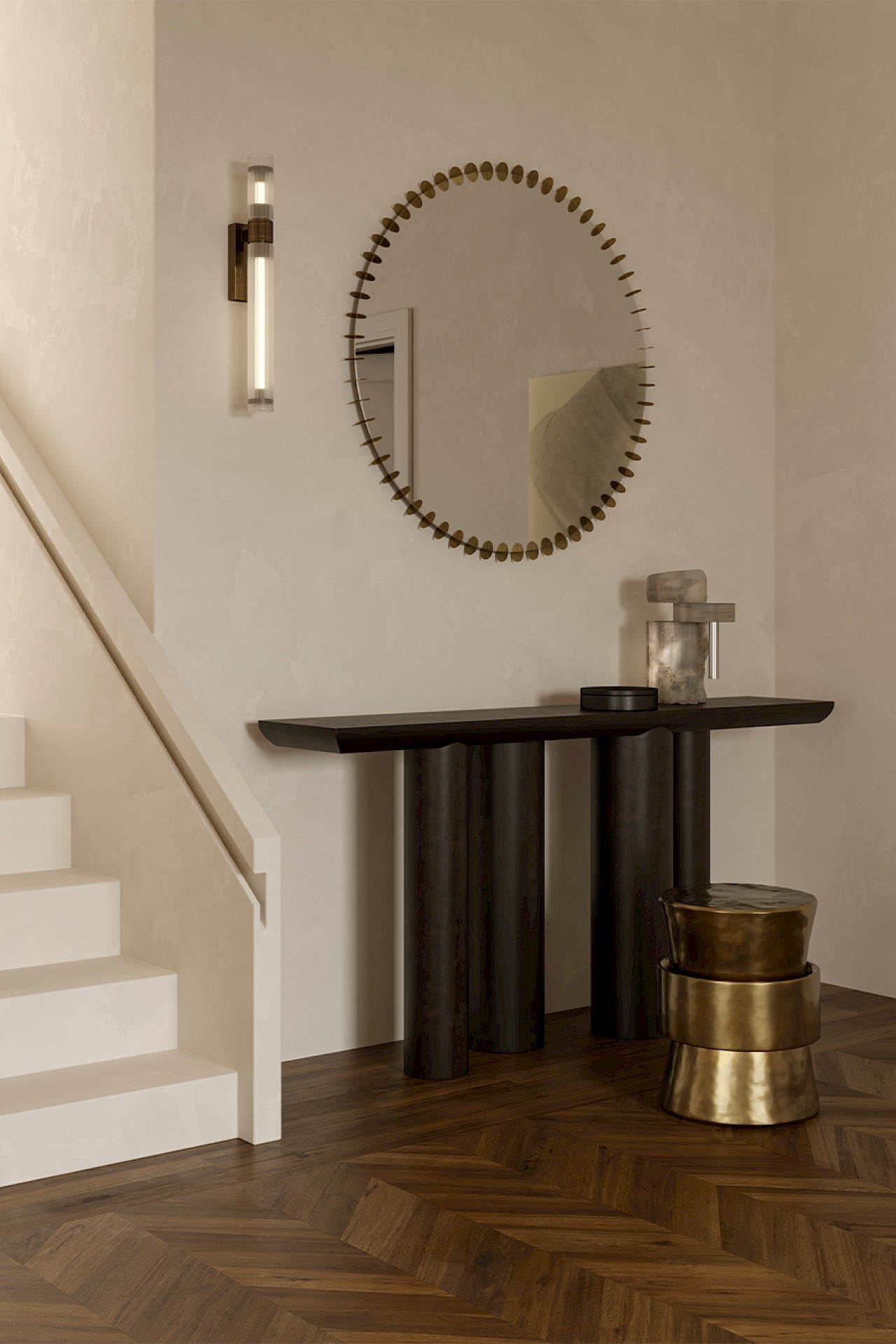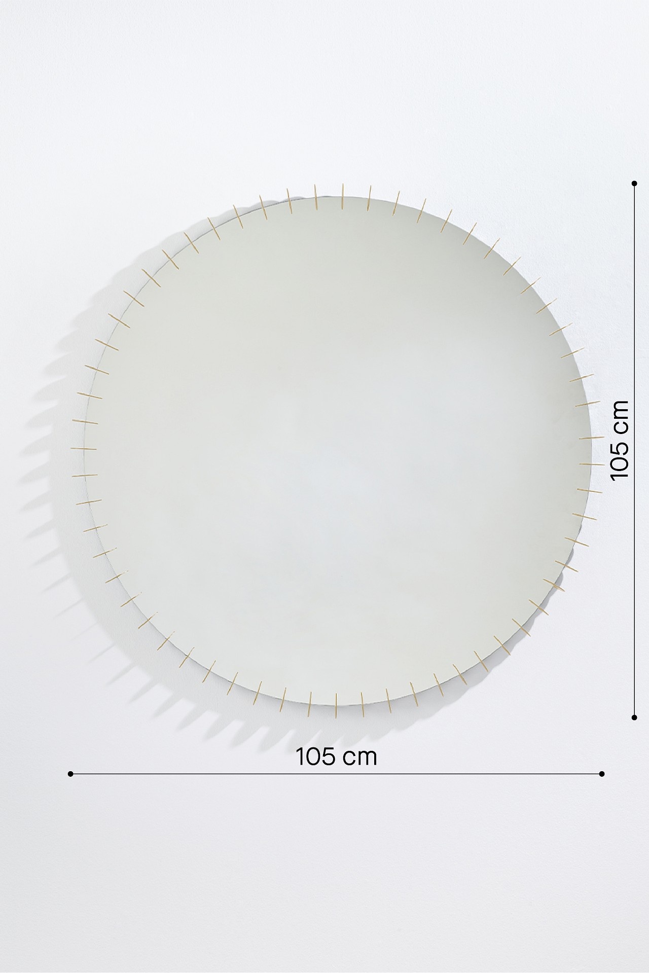 Les accents dorés rayonnent d'une élégance intemporelle et font du Ray Gold L un véritable accroche-regard. Chaque disque est placé à égale distance avec une précision géométrique, ce qui confère au miroir un aspect raffiné et luxueux.