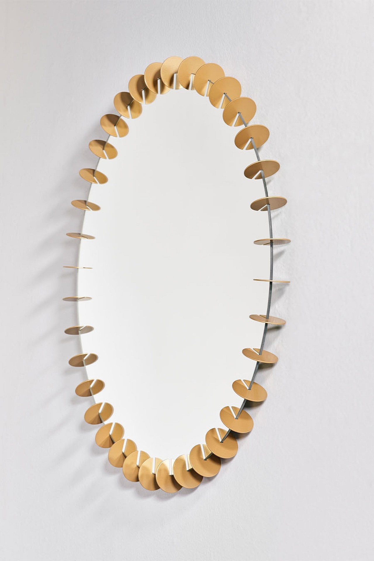 Les accents dorés rayonnent d'une élégance intemporelle et font de ce miroir un objet design luxueux. Grâce à la précision géométrique avec laquelle chaque disque est placé, le Ray Gold S souligne que la beauté réside dans les détails.