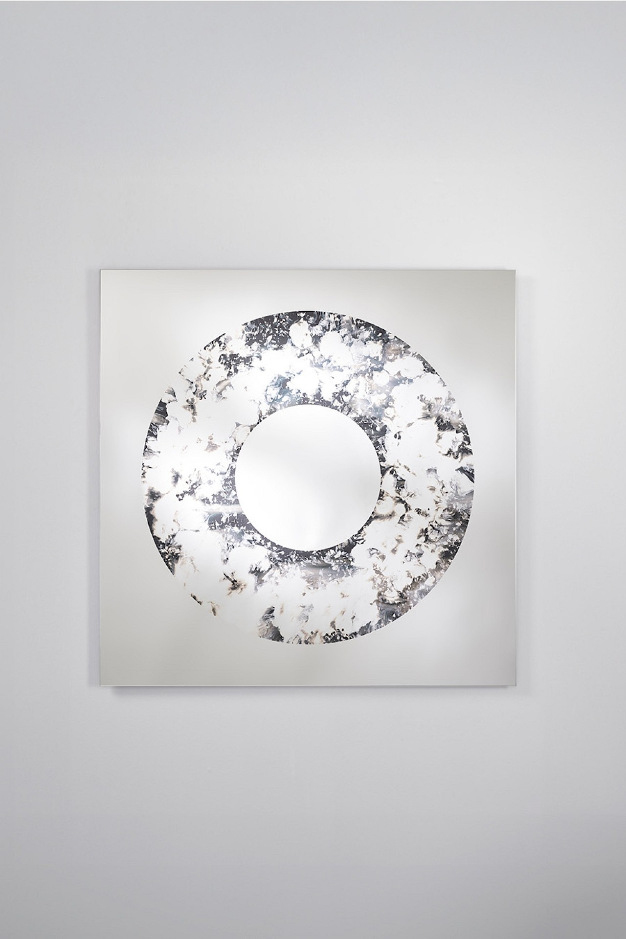 Le miroir 'Torus' est un objet design unique inspiré de la forme mathématique d'un tore, un cercle qui tourne autour de son propre axe. Chaque miroir est argenté à la main, ce qui crée à chaque fois des motifs nouveaux et expressifs. Ainsi, aucun miroir Torus n'est identique à un autre et chacun possède son propre caractère.