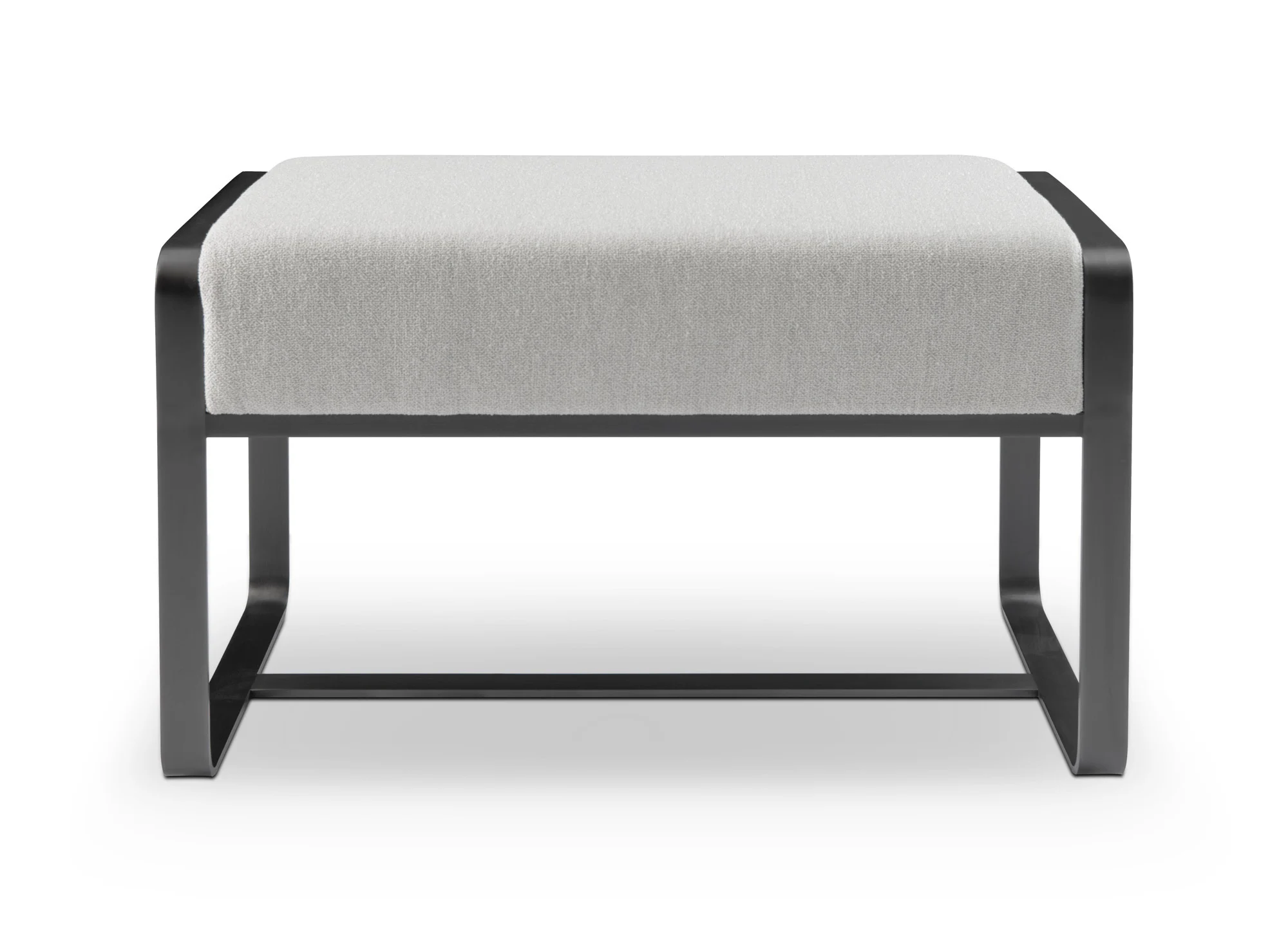 Ottoman confortable recouvert d'un mélange doux de polyester et de lin, inspiré du design italien. Le passepoil en cuir et le piètement élancé en bronze lui confèrent un look moderne et subtil. Un meuble élégant et intemporel qui s'intègre parfaitement dans n'importe quel intérieur.