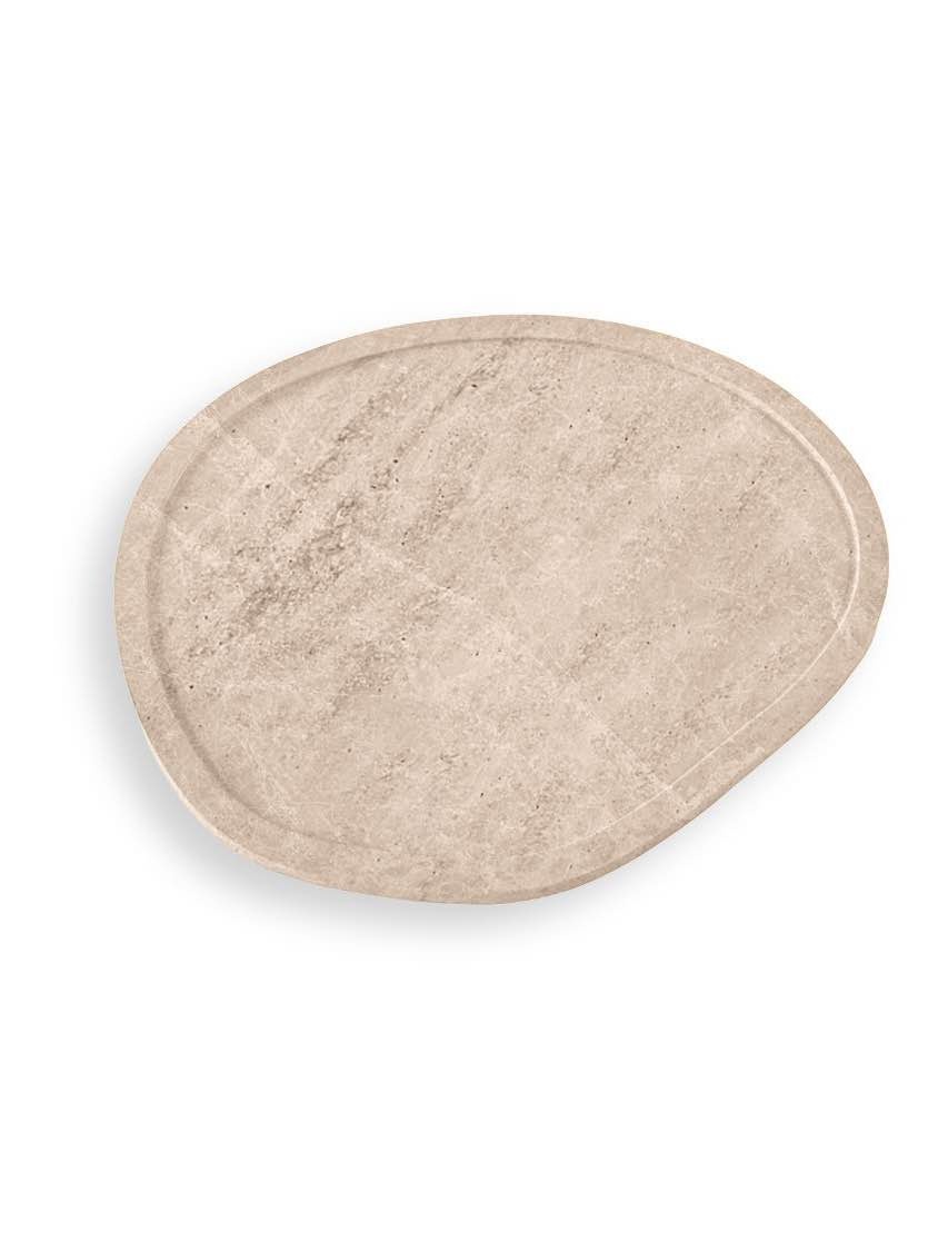 Ce plateau de la marque néerlandaise Bombyxx est un bel objet décoratif qui trouvera parfaitement sa place sur une table à manger ou une table basse. Décorez-le avec quelques jolis vases et des bougies chauffe-plat. Le plateau est fabriqué en travertin et doit son aspect luxueux à son mode de fabrication artisanal.